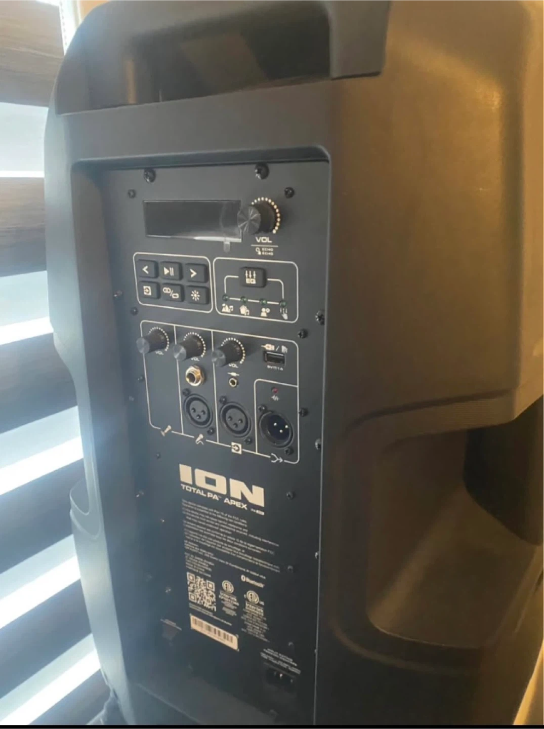 ION Total PA Apex portable PA system with Bluetooth. It's got a powerful speaker and multiple input options. Great for parties or events!