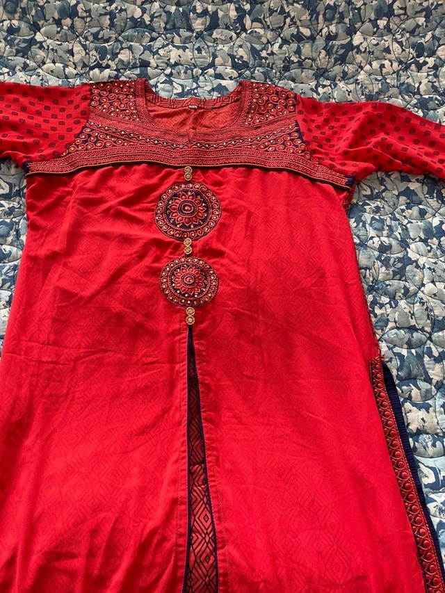 Brighten up your wardrobe with this vibrant Kameez. Condition: Used - Like new. Size: Medium (8-10). For Sale By: Owner. Curbside pick up: Yes. Cash accepted: Yes.