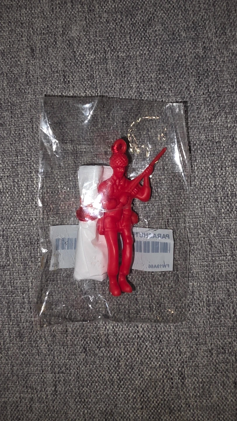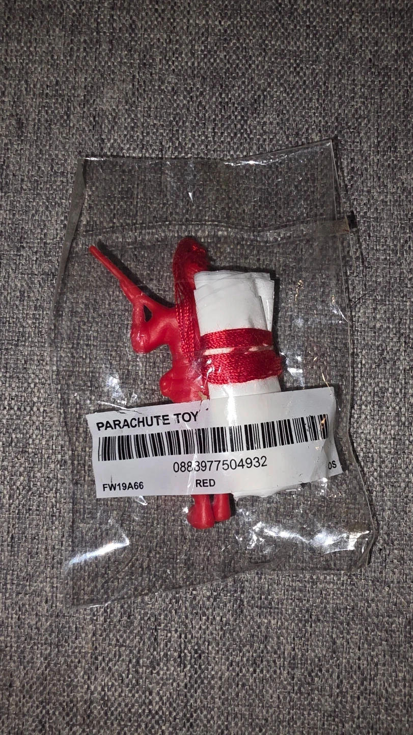 This is a red parachute toy soldier made by Supreme New York from the Fall/Winter 2029 Collection.