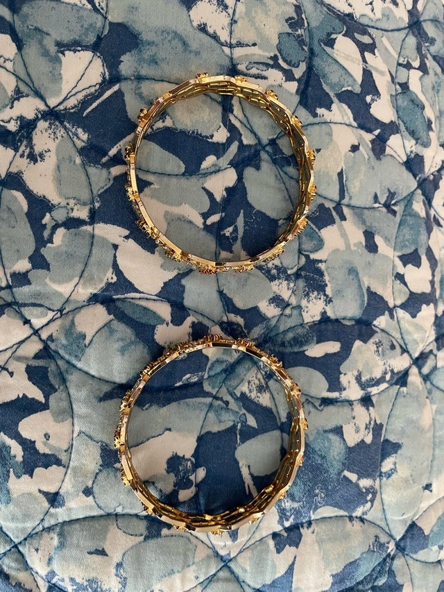 Add a touch of sparkle to your outfit with these dazzling bangles! They are used but in like-new condition. Cash is accepted for payment. Curbside pickup is available.