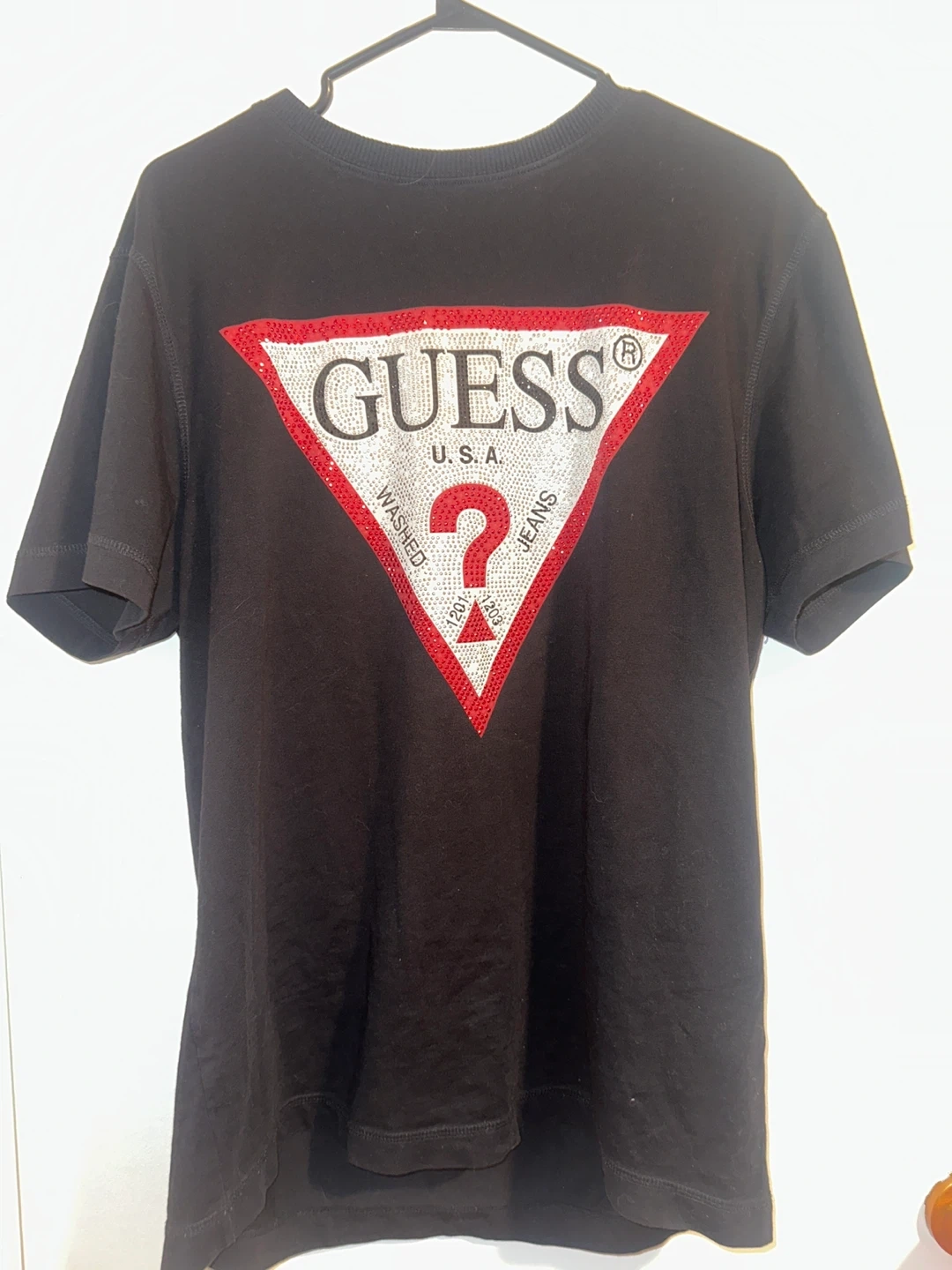 Buy & SellGuess T-Shirt with Rhinestone LogoGuess T-Shirt with Rhinestone Logo$5Black Guess t-shirt with the iconic red and white rhinestone logo. It's a short-sleeved crewneck style. Crewneck style.ConditionGoodSizeSBrandGuessWHERE TO MEETJoyce CollingwoodView MapSELLERverifiedCarolinaEast Vancouver650 reviews0 chats·0 favorites·2 viewsSEND CHAT TO SELLERHi Carolina! I’m interested in your listing.Hi Carolina! I’m interested in your listing.Get the Karrot app to chatSign In to chat