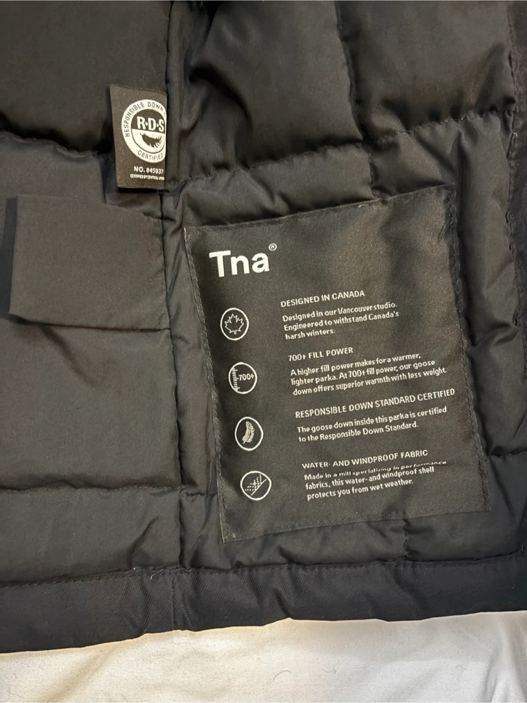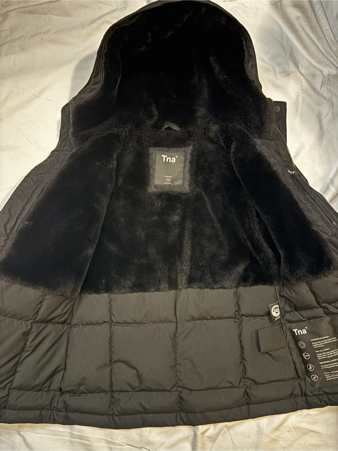 Tna Summit Black Down Jacket - XS. Please note the fur is missing from the hood. $40 cash, porch pick up Kennedy and Eglinton.