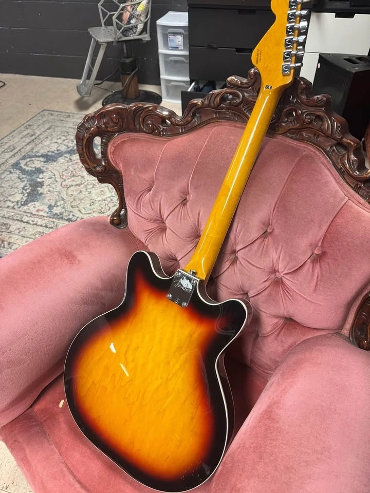 The Fender Modern Player Coronado 2 "reissue" is a captivating blend of vintage style and modern playability. As a semi-hollowbody electric guitar, it offers a unique tonal versatility that appeals to musicians across diverse genres. Its construction includes a laminated maple top, back, and sides, which contribute to its rich, resonant sound and lightweight feel. The guitar's distinctively shaped body is not just eye-catching but also designed for comfort during long playing sessions.