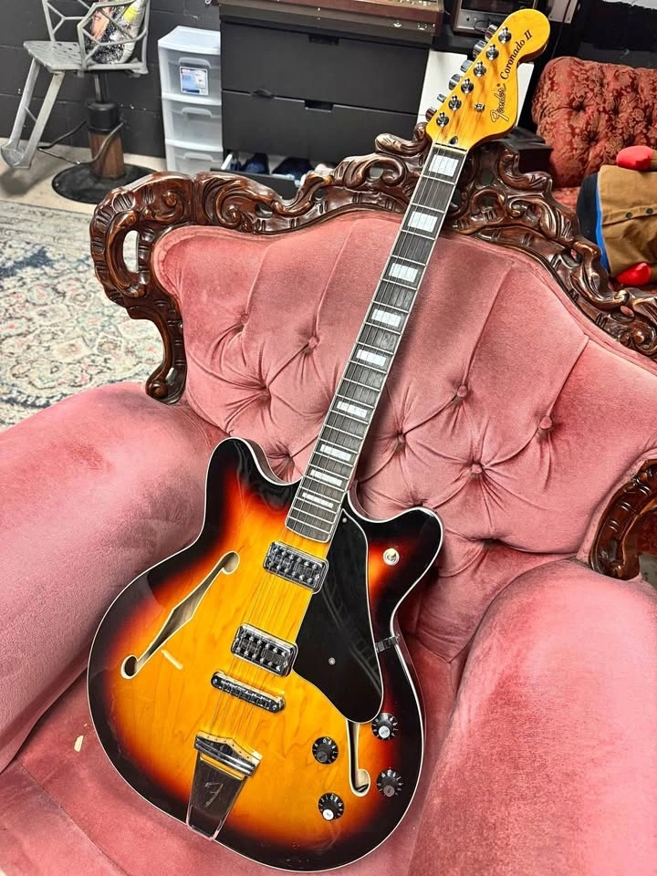 The Fender Modern Player Coronado 2 "reissue" is a captivating blend of vintage style and modern playability. As a semi-hollowbody electric guitar, it offers a unique tonal versatility that appeals to musicians across diverse genres. Its construction includes a laminated maple top, back, and sides, which contribute to its rich, resonant sound and lightweight feel. The guitar's distinctively shaped body is not just eye-catching but also designed for comfort during long playing sessions.