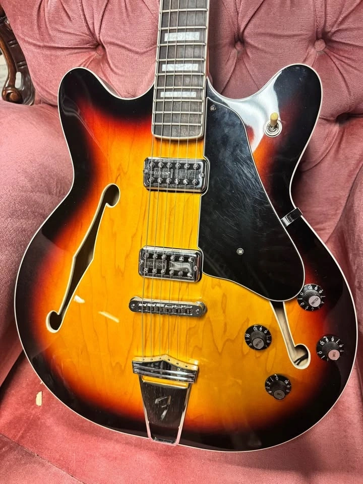 Equipped with a pair of Fideli'Tron humbucking pickups, the Coronado delivers a wide range of tones from warm and full to bright and cutting. The pickups, combined with a three-way toggle switch, provide an array of sonic possibilities, making it ideal for blues, rock, jazz, and more. The "C" shape maple neck with a 9.5" radius fingerboard ensures smooth playability, whether you're strumming chords or executing intricate solos.