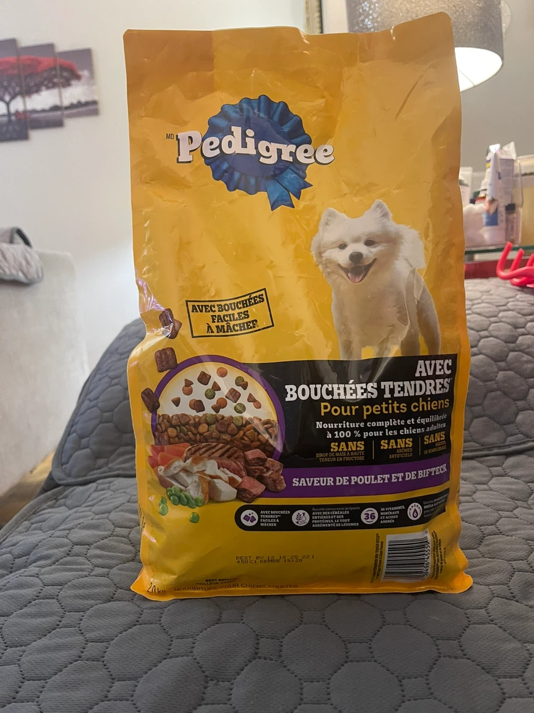Pedigree Tender Bites for small dogs. Nourishment complete and balanced for puppies up to 100% for puppies. It's made with chicken and beef flavour. No artificial colours or flavours.