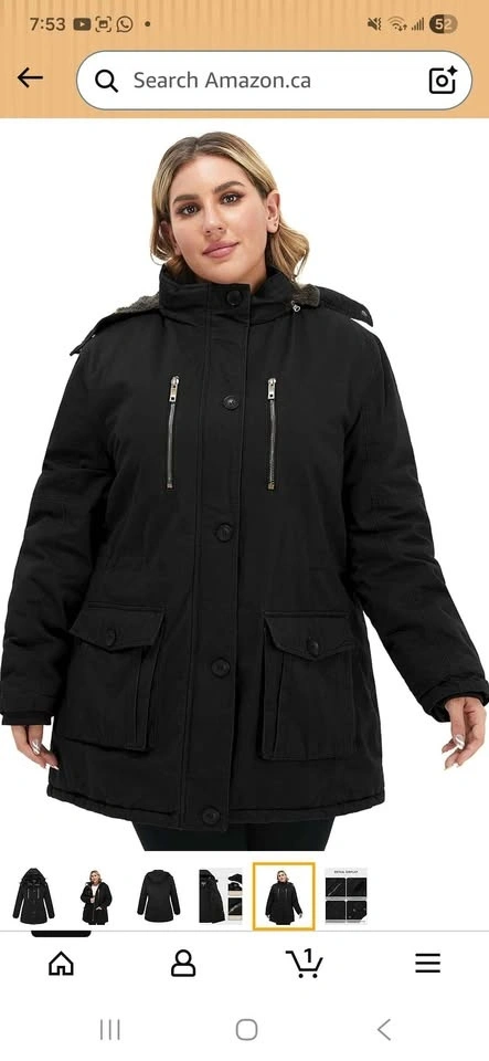 Brand New Soularge Women's Winter Plus Size Thickened Cotton Coat with Detachable Hood. Available Sizes 4XL and 5XL. Pet free and smoke free home.