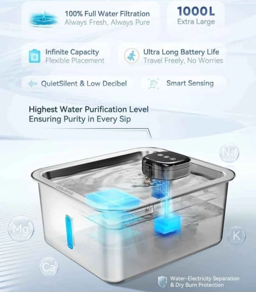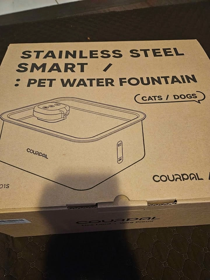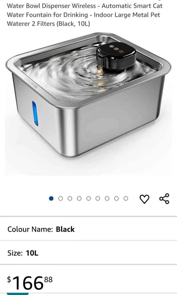Brand new pet water fountain, stainless steel, 10L/2.6Gal capacity. Automatic smart cat water fountain for drinking. Indoor large metal pet waterer with 2 filters. Still in its original package. Price negotiable for fastest pickup. Can be delivered based on my availability.
