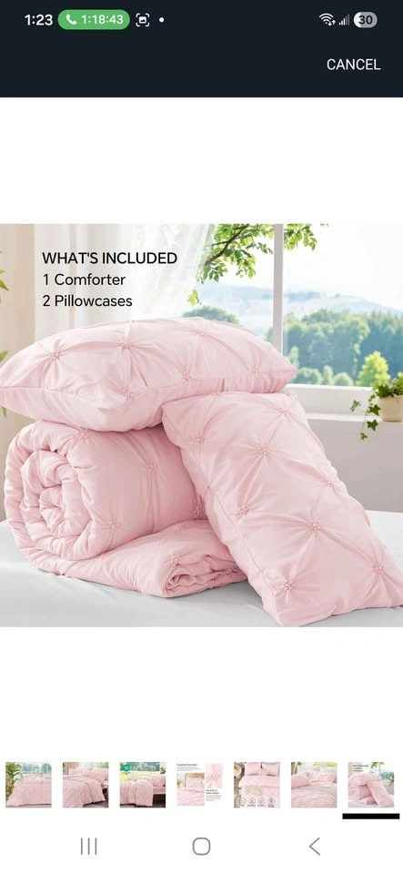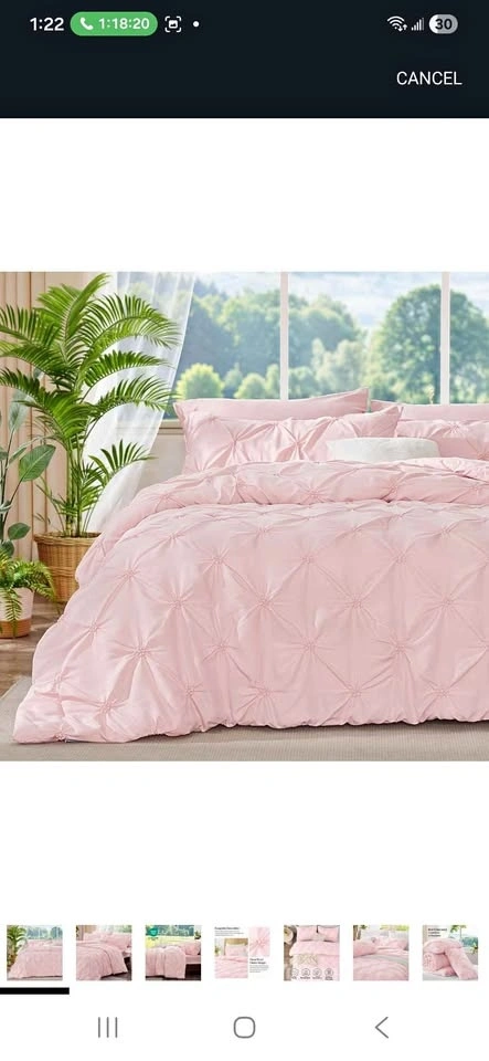 Brand new BEDELITE Queen Comforter Set in Baby Pink. This is a 3-piece Boho Pintuck bedding set, including 2 pillow shams. Suitable for all seasons, it's lightweight, soft, and warm. Comes from a pet-free and smoke-free home. Still in its original package.