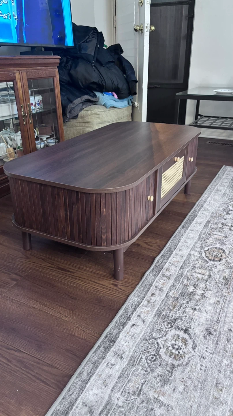 These are 2 cute dark wood matching TV stand and coffee table, they are practically brand new.