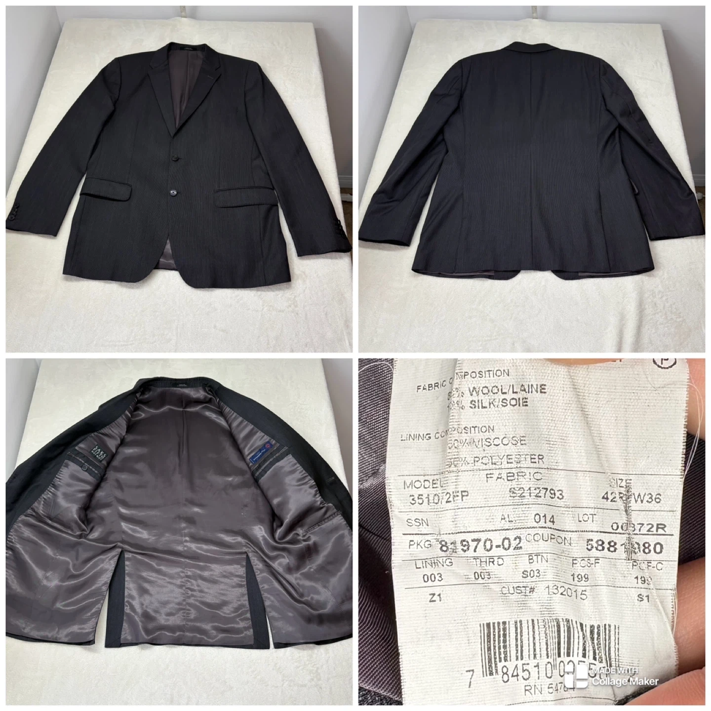 Ermenegildo Zegna, Saks Fifth Avenue, Wool Silk Suit, Black Suit, Charcoal Suit, Men's Formal Wear, Single Breasted, Made in USA, Luxury Suit, 42R, 36x31, Designer Suit, Wedding, Business Professional