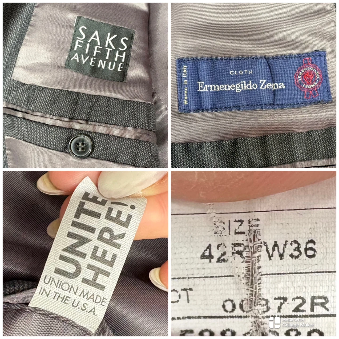 Ermenegildo Zegna, Saks Fifth Avenue, Wool Silk Suit, Black Suit, Charcoal Suit, Men's Formal Wear, Single Breasted, Made in USA, Luxury Suit, 42R, 36x31, Designer Suit, Wedding, Business Professional