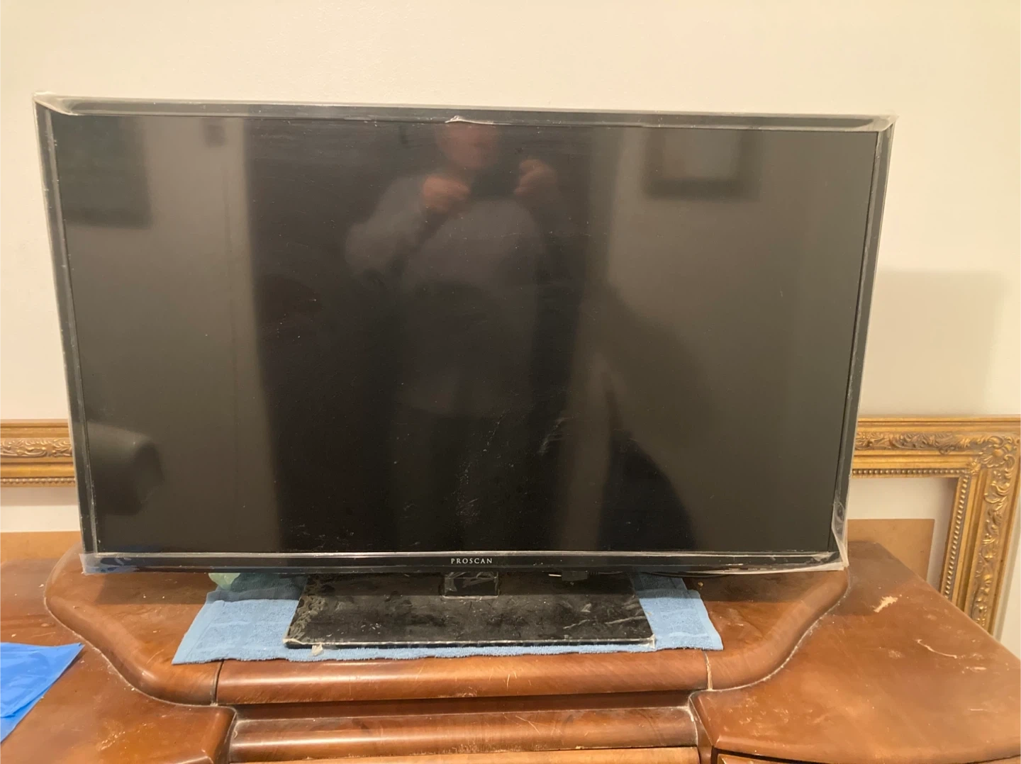 A Proscan television is available. This is a black flat-screen TV. It's a good unit for any room in the house! 40” , used in good condition. No power cord, no remote. Good working condition. Paid $275+ tax. Sell for $40