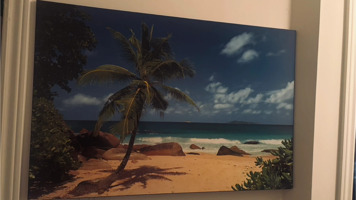 Bring a bit of paradise indoors with this stunning canvas print. It features a vibrant image of a palm-fringed beach with turquoise waters and sandy shores. This piece adds a relaxing, vacation vibe to any room. It's a beautiful way to brighten up your living space!