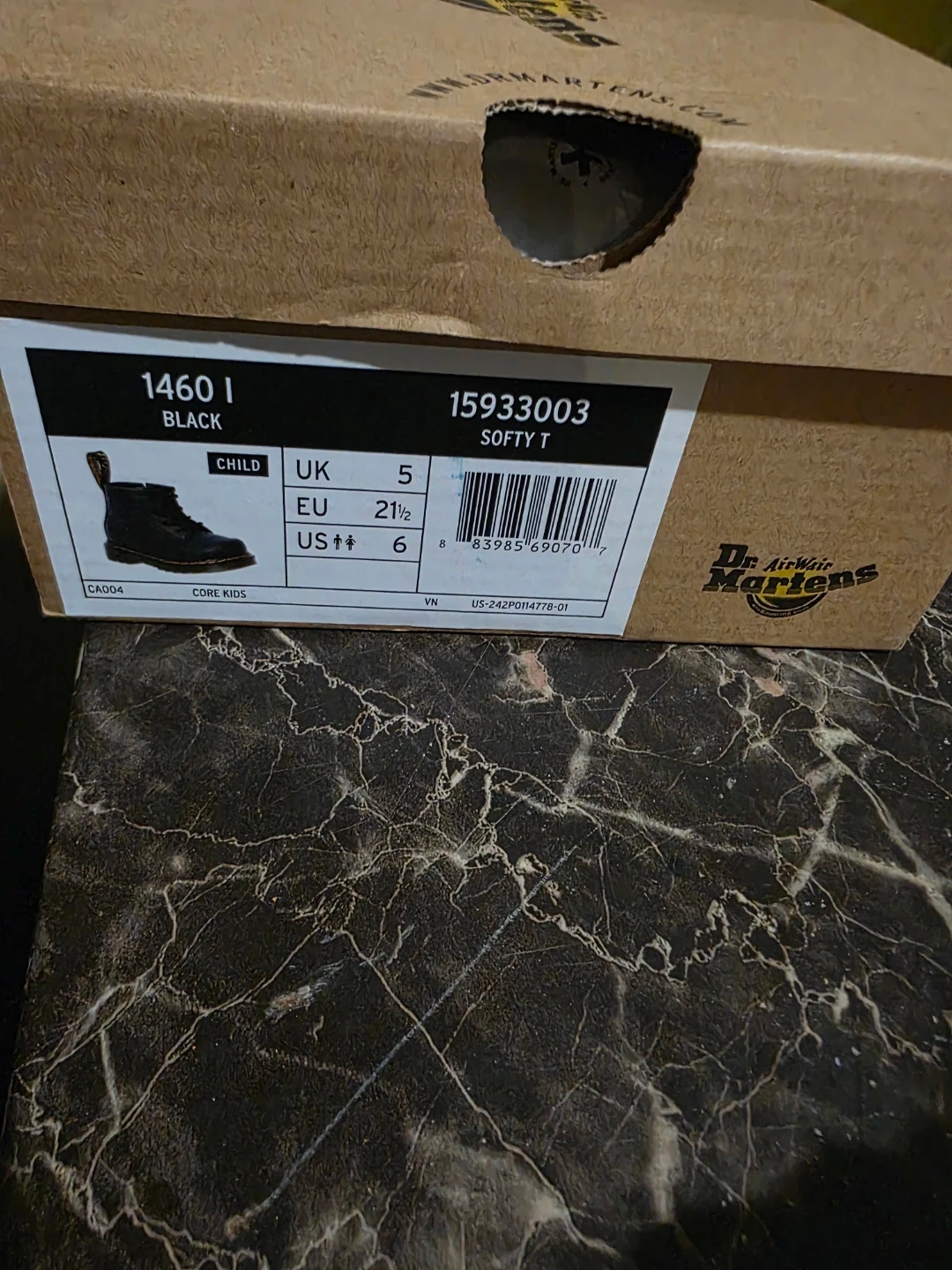 Dr. Martens 1460 I Softy T boots in black. These are a children's size 6C. They come with the original box.