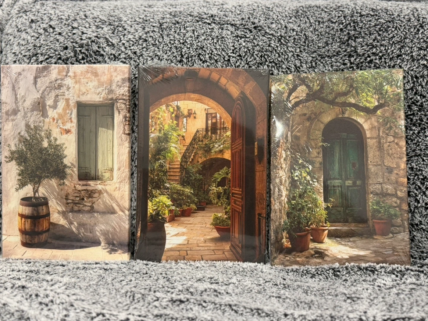 3-Piece Canvas Wall Art Set - Mediterranean Courtyard Scenes