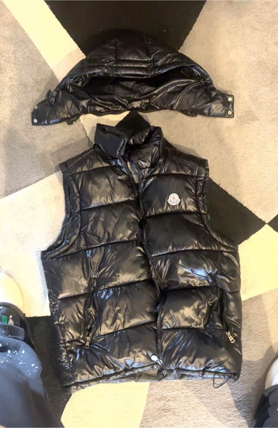 100% authenticThis is a Moncler puffer vest. It's black and comes in a size small. The hood is detachable! It's down certified. Retails for over 2100$