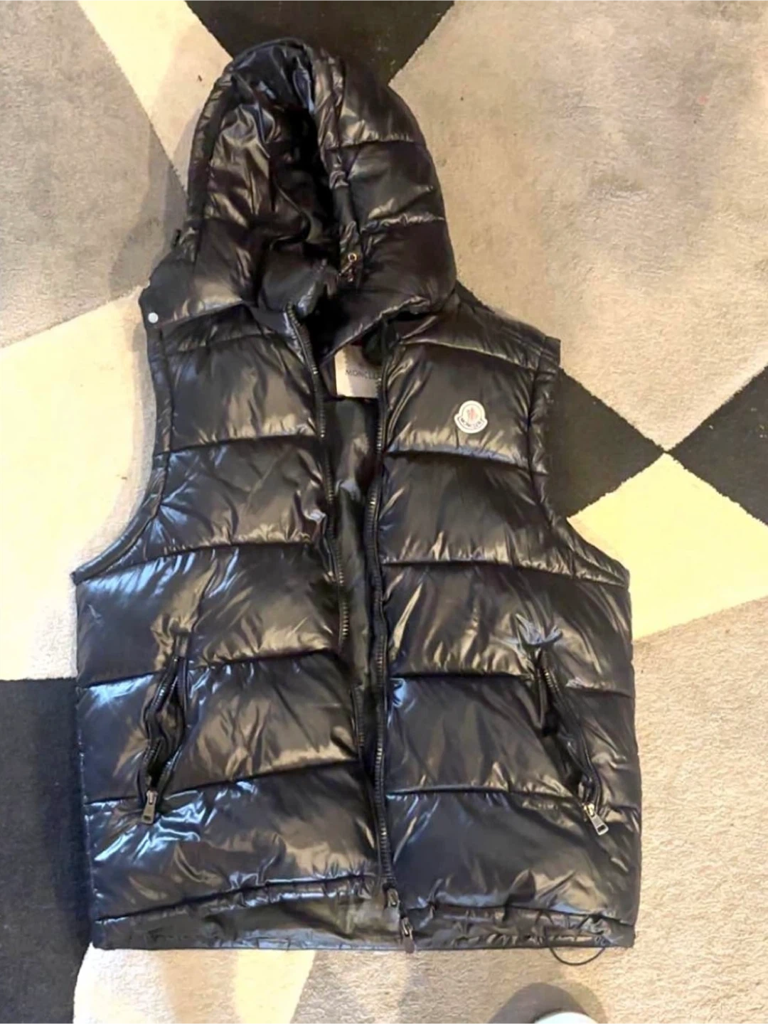 100% authenticThis is a Moncler puffer vest. It's black and comes in a size small. The hood is detachable! It's down certified. Retails for over 2100$