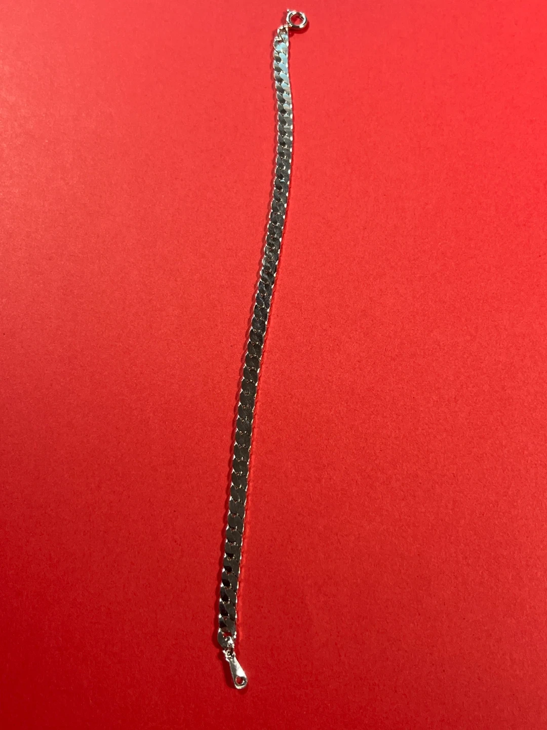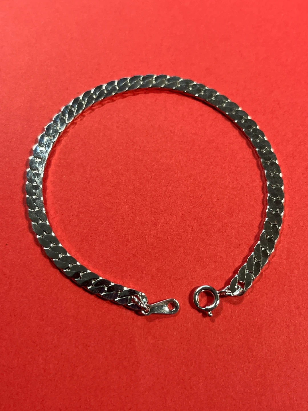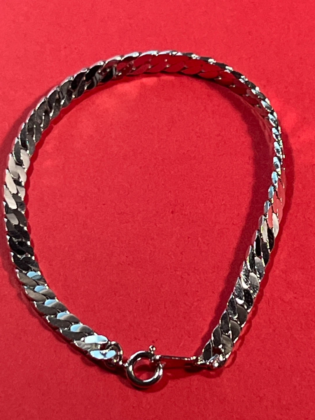 Shiny silver tone chain bracelet with a secure clasp. It's a classic design that's perfect for everyday wear. This bracelet would make a great gift for yourself or someone special!