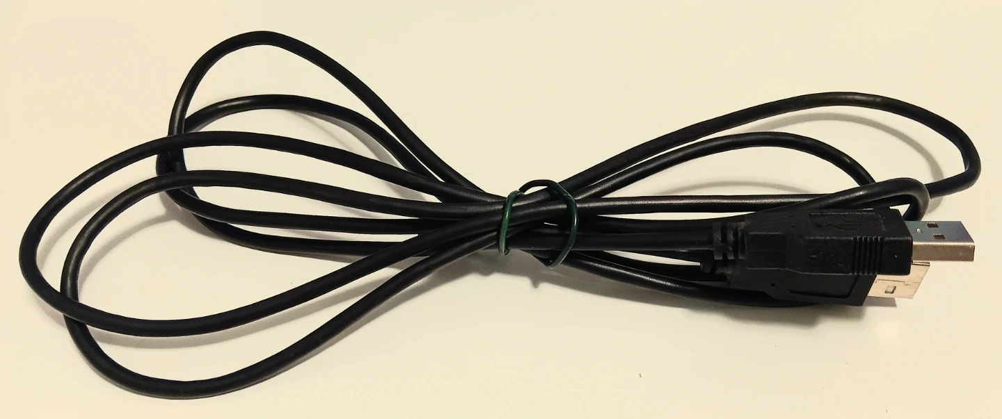 This is a standard USB cable in used condition, perfect for connecting various devices such as keyboards, mice, modems, and printers to your computer. It provides a reliable connection for data transfer and device charging.
