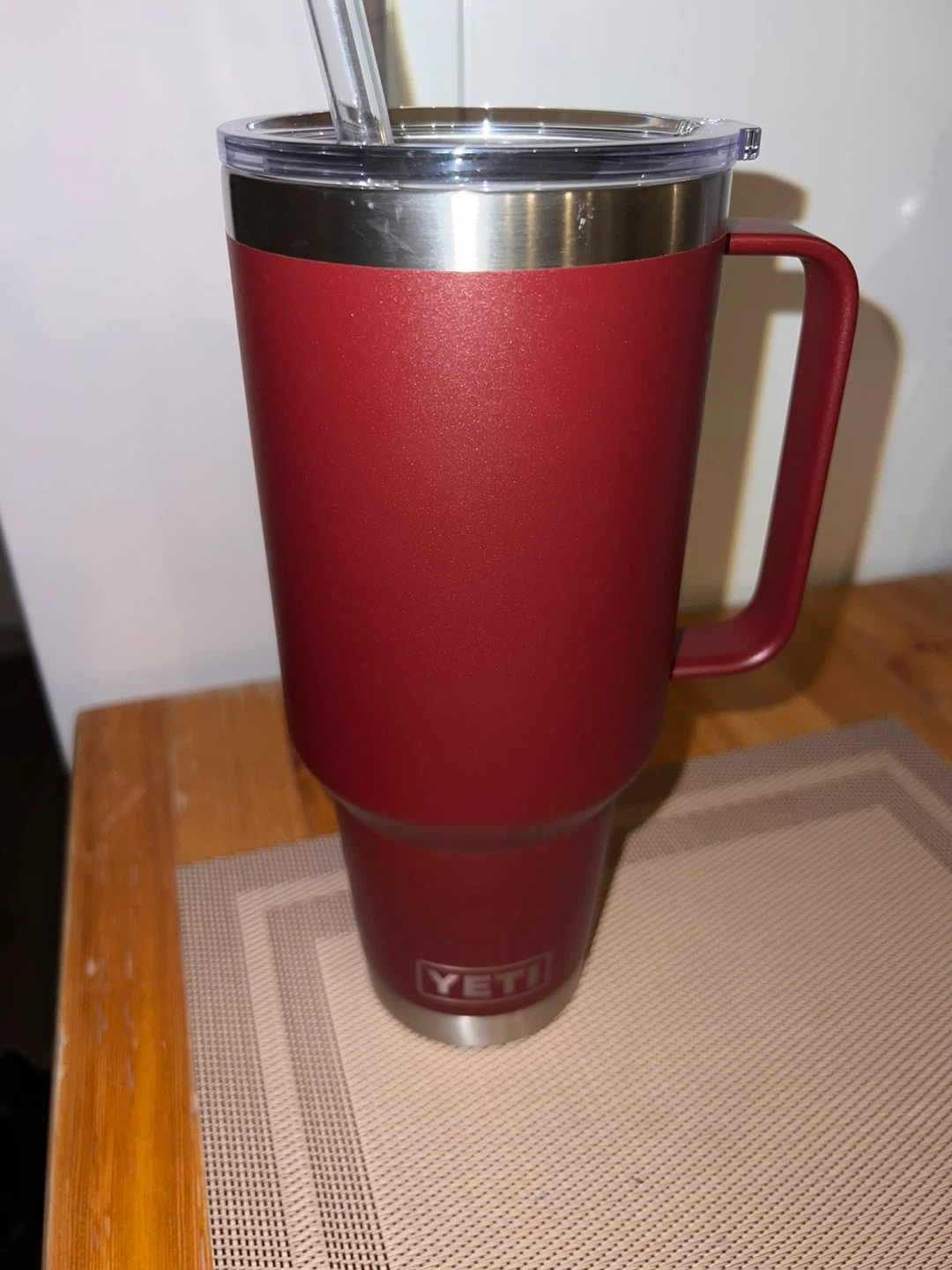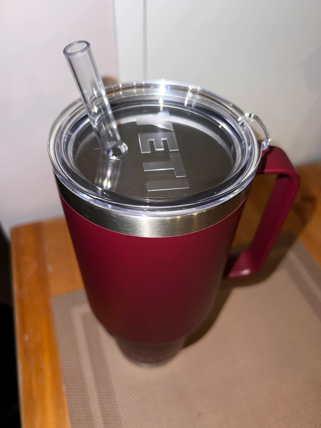 • 42oz YETI Rambler Mug – Maroon (with handle & straw)