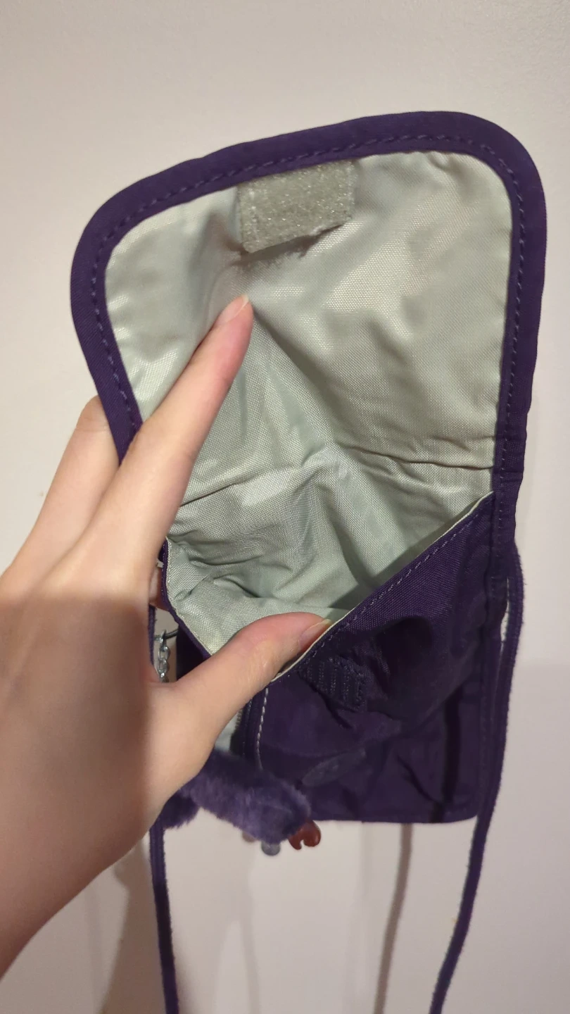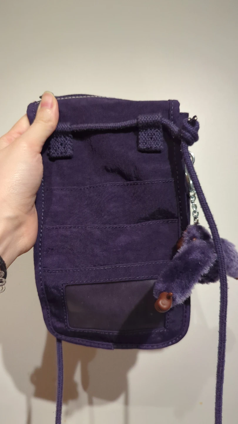 This purple Kipling crossbody bag is a convenient size for holding your phone and essentials. The bag comes with its signature Kipling monkey charm.