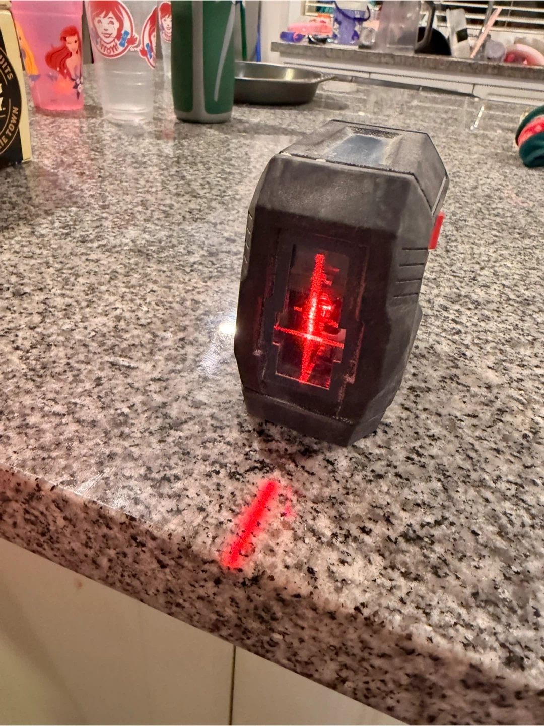 This is a Bosch Professional GLL50-20 self-levelling cross-line laser level. It's a red beam model with a range of 50 ft. It's designed for professional use and self-levels for accurate measurements.