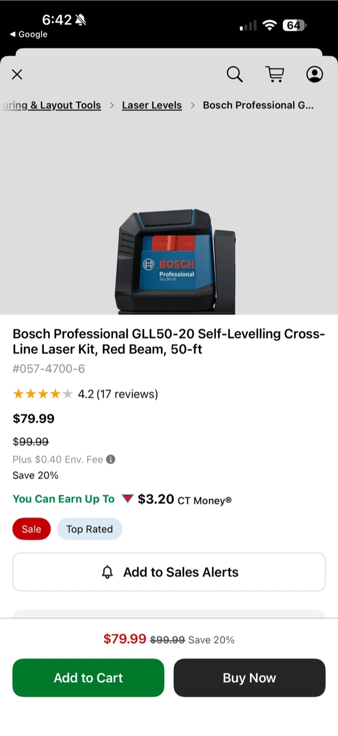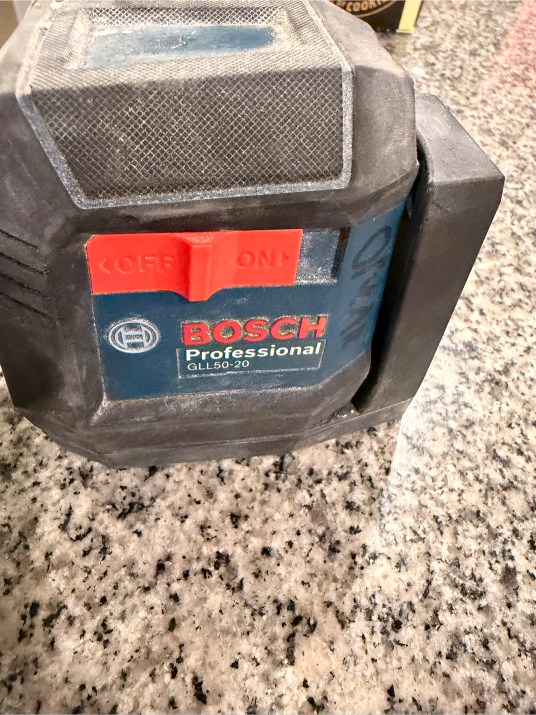 This is a Bosch Professional GLL50-20 self-levelling cross-line laser level. It's a red beam model with a range of 50 ft. It's designed for professional use and self-levels for accurate measurements.