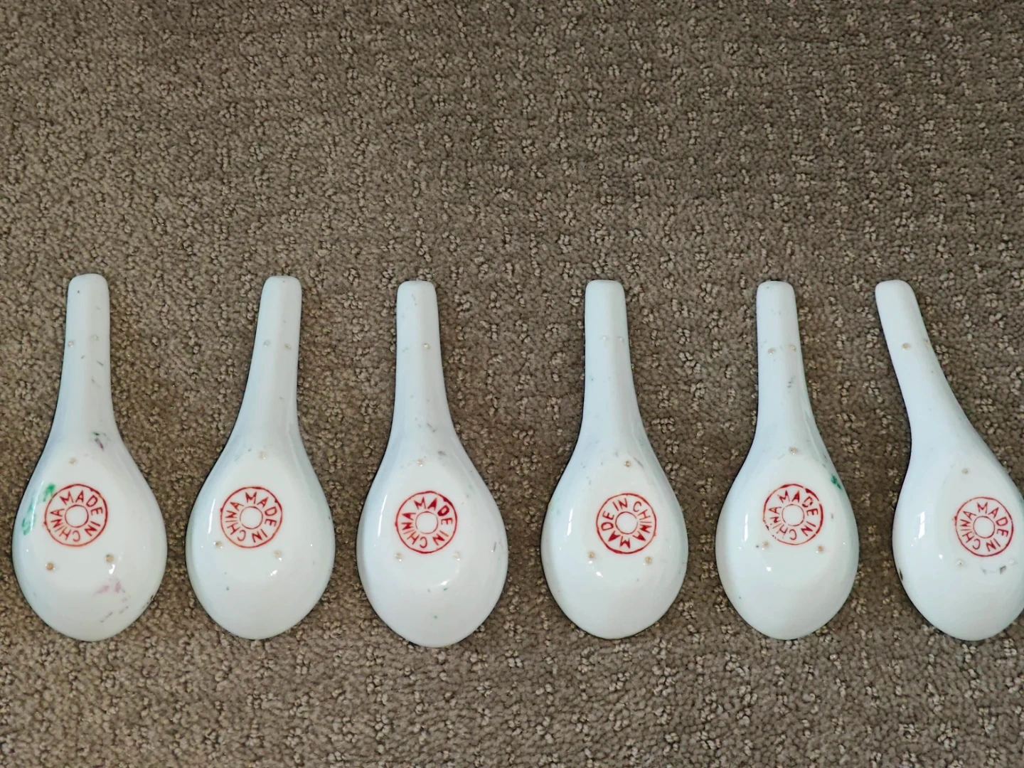 * Markings: Red "Made in China" stamp on the back of each spoon.