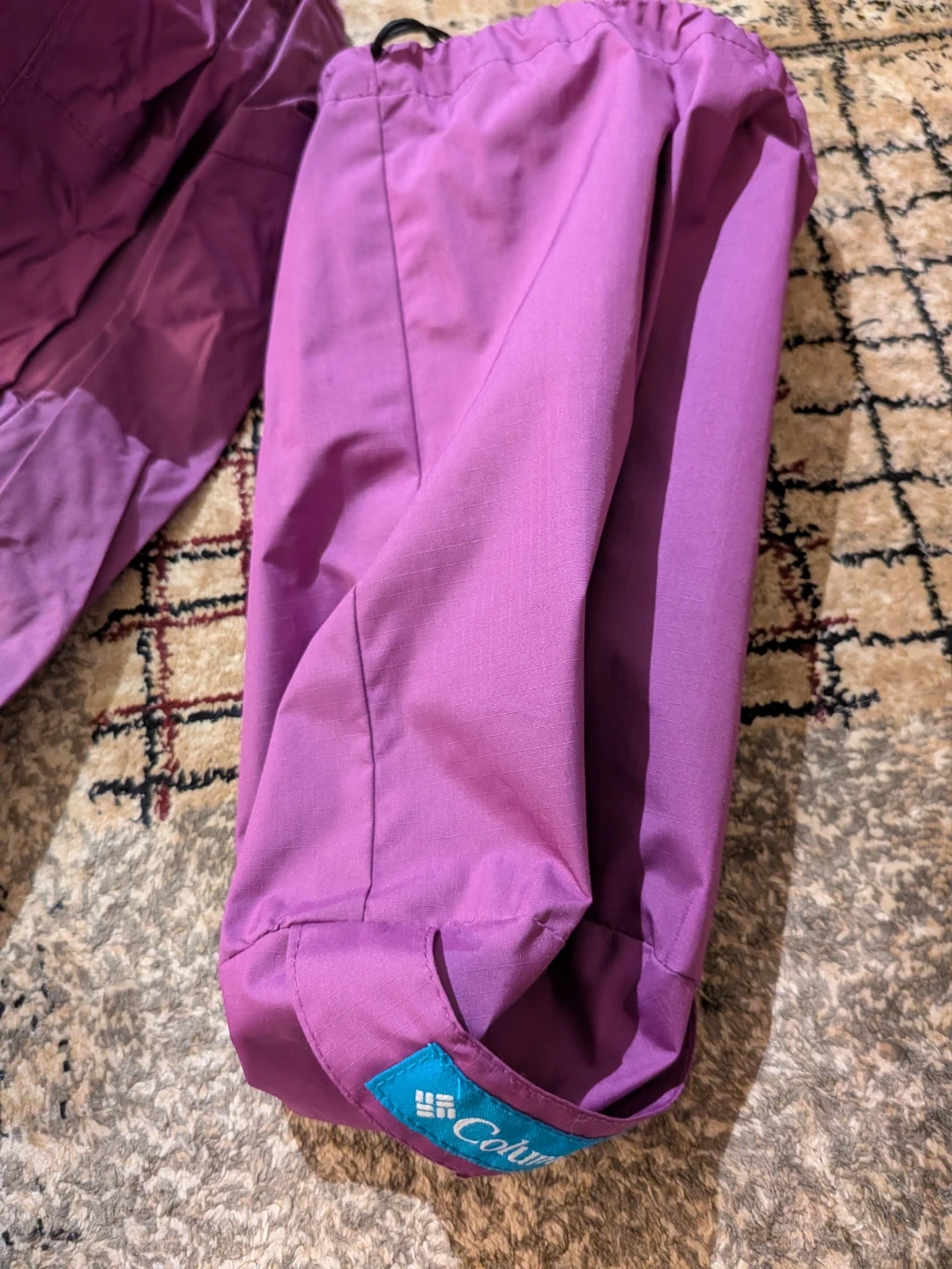 This Columbia jacket is waterproof and breathable, perfect for outdoor adventures! It features a hood and a durable, lightweight design. Zippered front closure and adjustable cuffs.