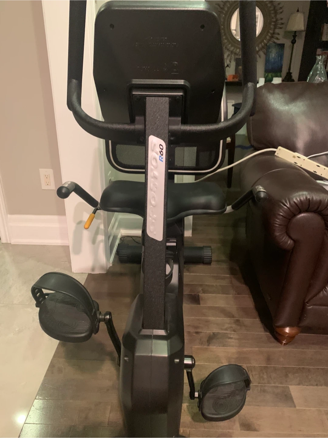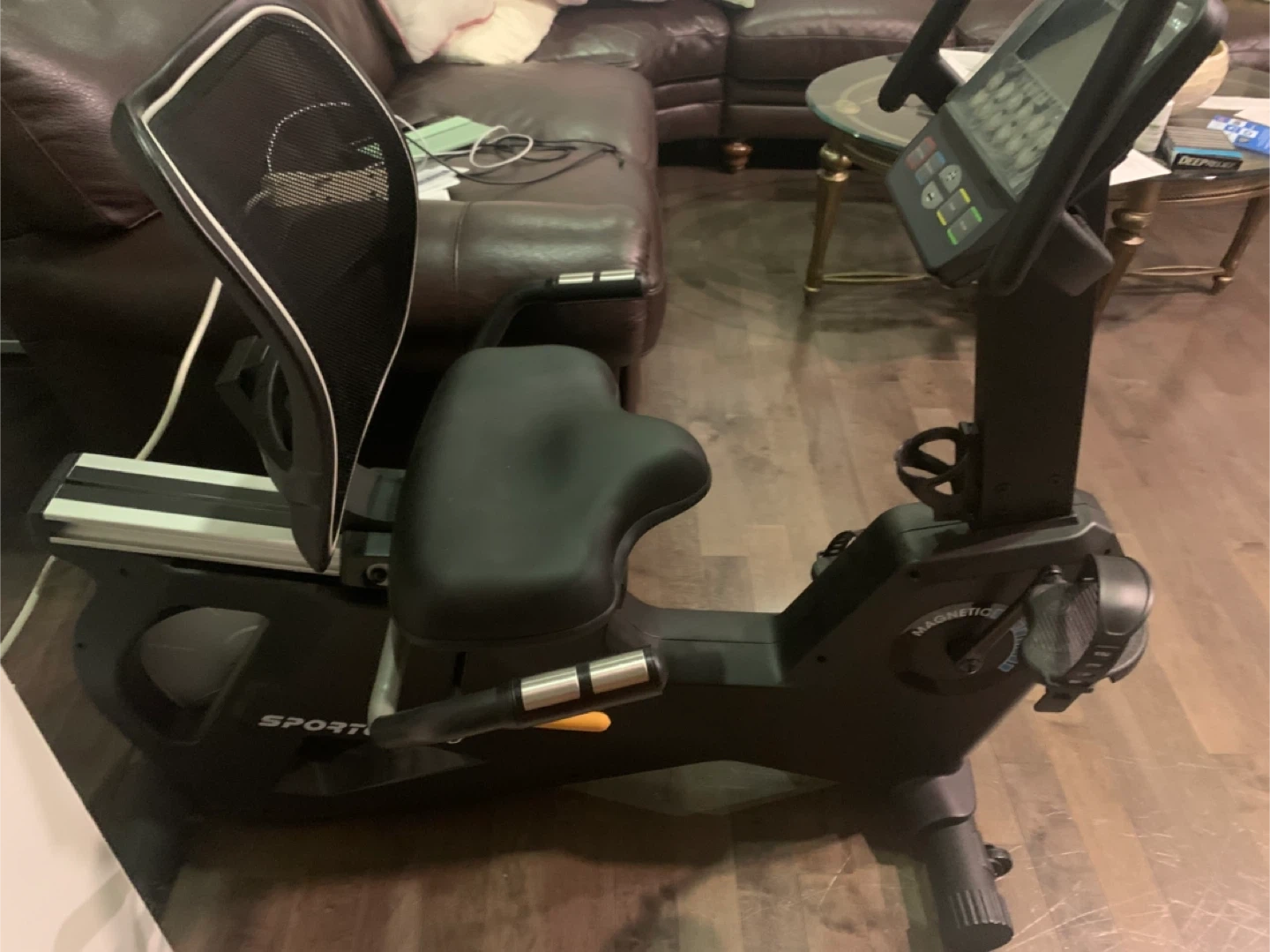 SPORTOP R60 recumbent exercise bike with magnetic resistance. Features include a comfortable seat and adjustable console. It's designed for home workouts.