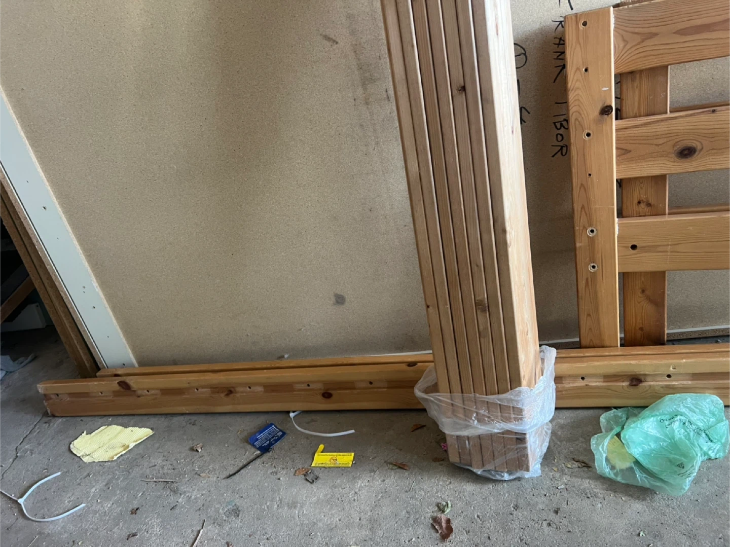 This IKEA toddler bed frame is made of natural wood. It features fun dinosaur cutouts on the headboard and footboard. The slatted base provides sturdy support for a mattress.