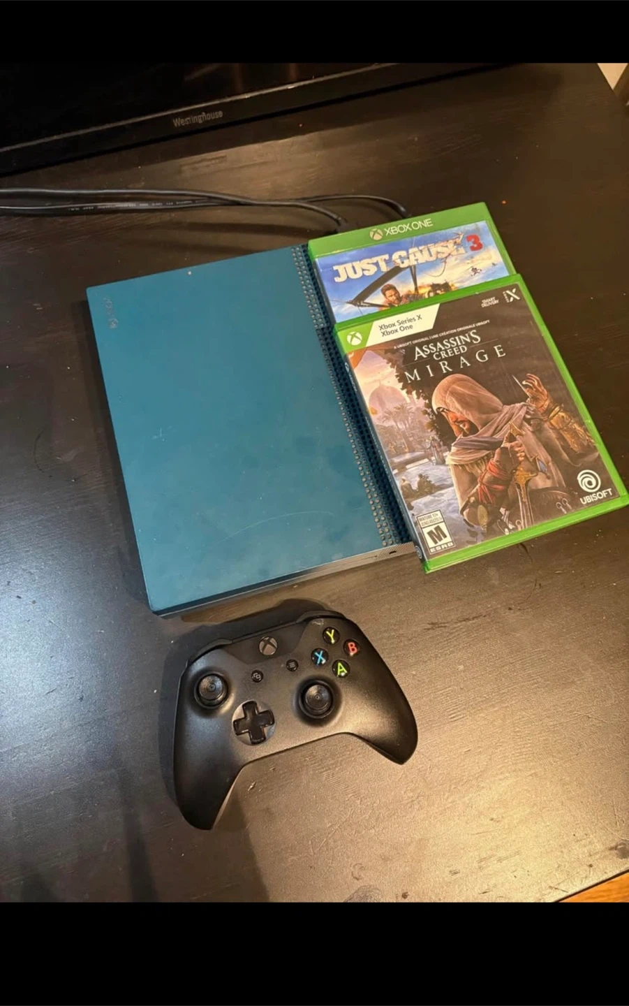 Xbox One S Blue color. Works perfectly with all cables and controller.