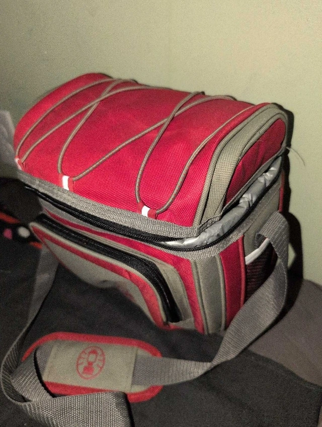 Keep your drinks and snacks cool with this Coleman cooler bag! It features a durable construction, insulated lining, and a convenient shoulder strap for easy carrying. It's in brand new condition, never used, and ready for your next adventure. Additional Features: Insulated Interior, Adjustable Shoulder Strap, Zippered Compartments. Cash accepted.