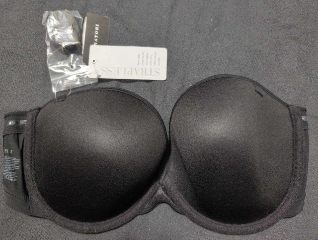 This is a Natori strapless bra in size 34DD. It is in brand new condition with tags. This bra offers excellent support and a smooth silhouette under clothing, making it a versatile addition to your lingerie collection. Brand: Natori, Size: 34DD, Style: Strapless, Colour: Black, Condition: New with tags. If the ad is up, then yes, it's still available!