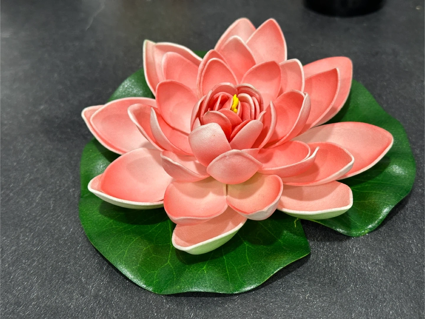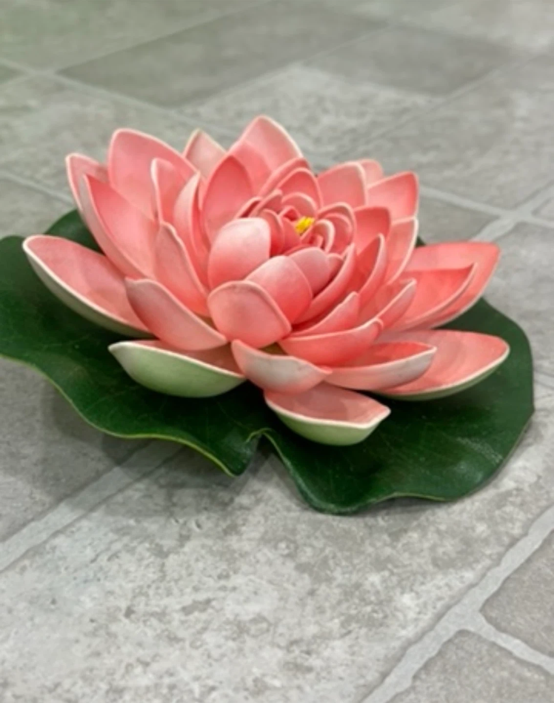 Lovely lotus flower decoration with a realistic green lily pad base. Its vibrant colour makes it a beautiful accent piece. This decorative flower adds a touch of tranquility to any space!
