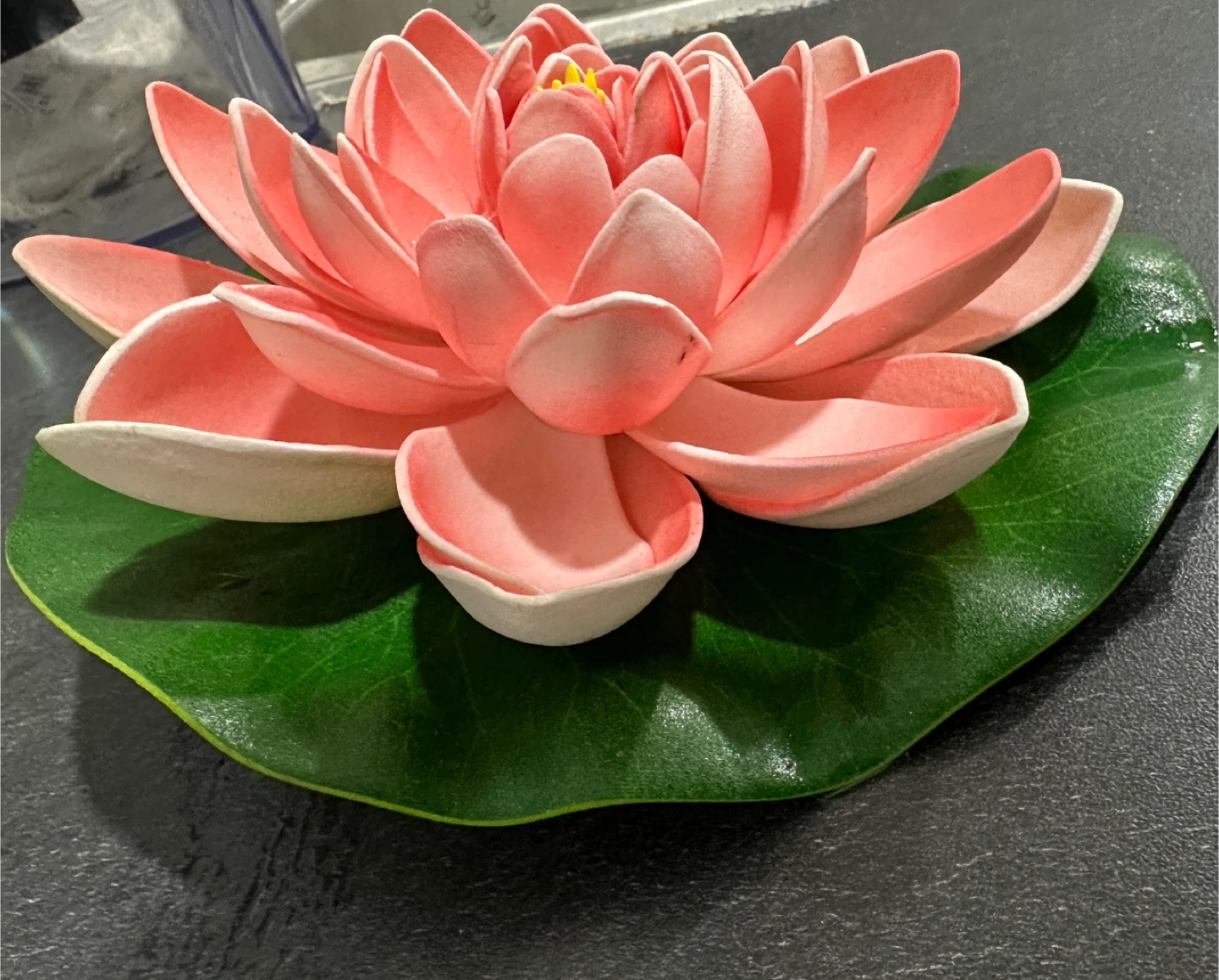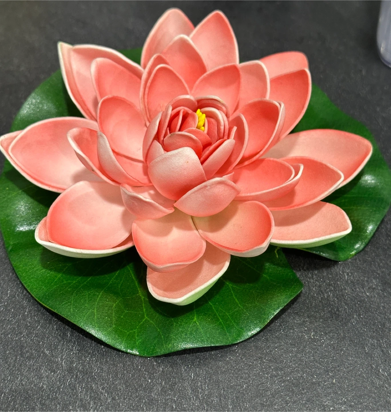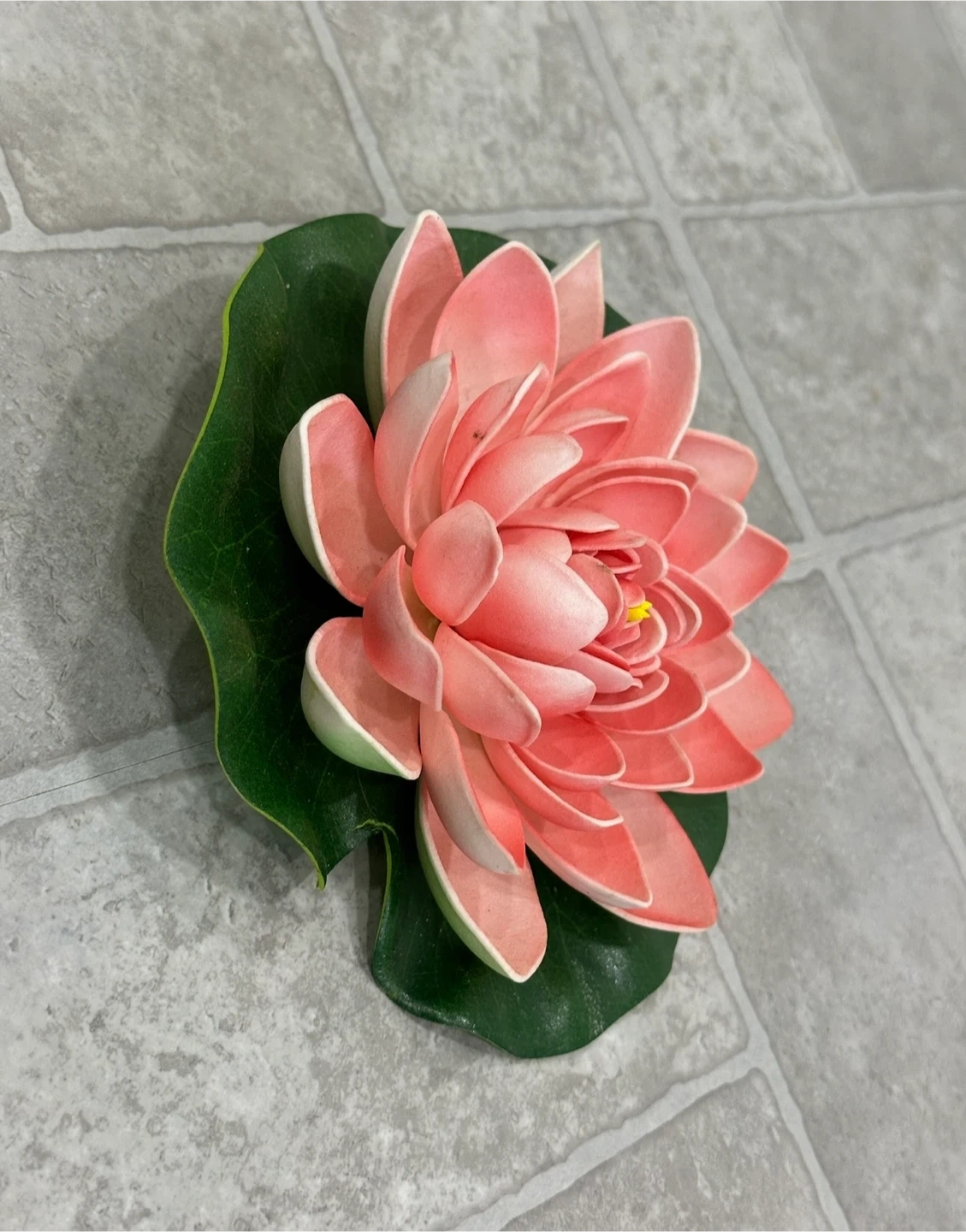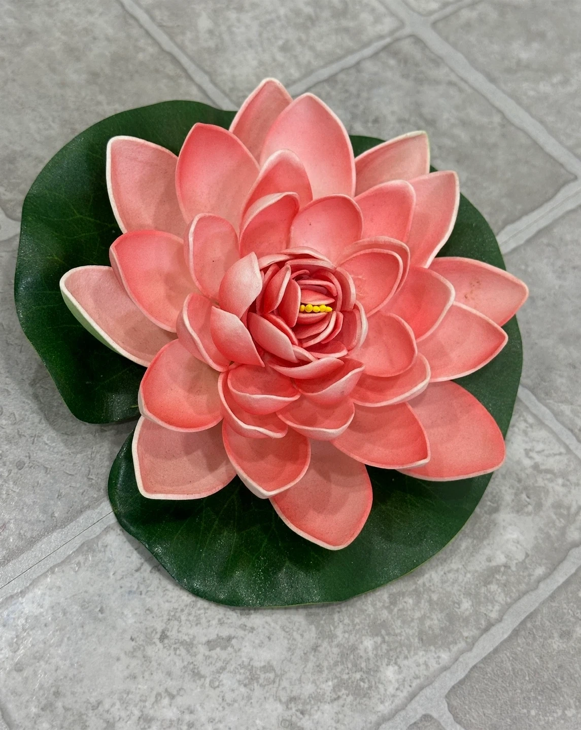 Lovely lotus flower decoration with a realistic green lily pad base. Its vibrant colour makes it a beautiful accent piece. This decorative flower adds a touch of tranquility to any space!
