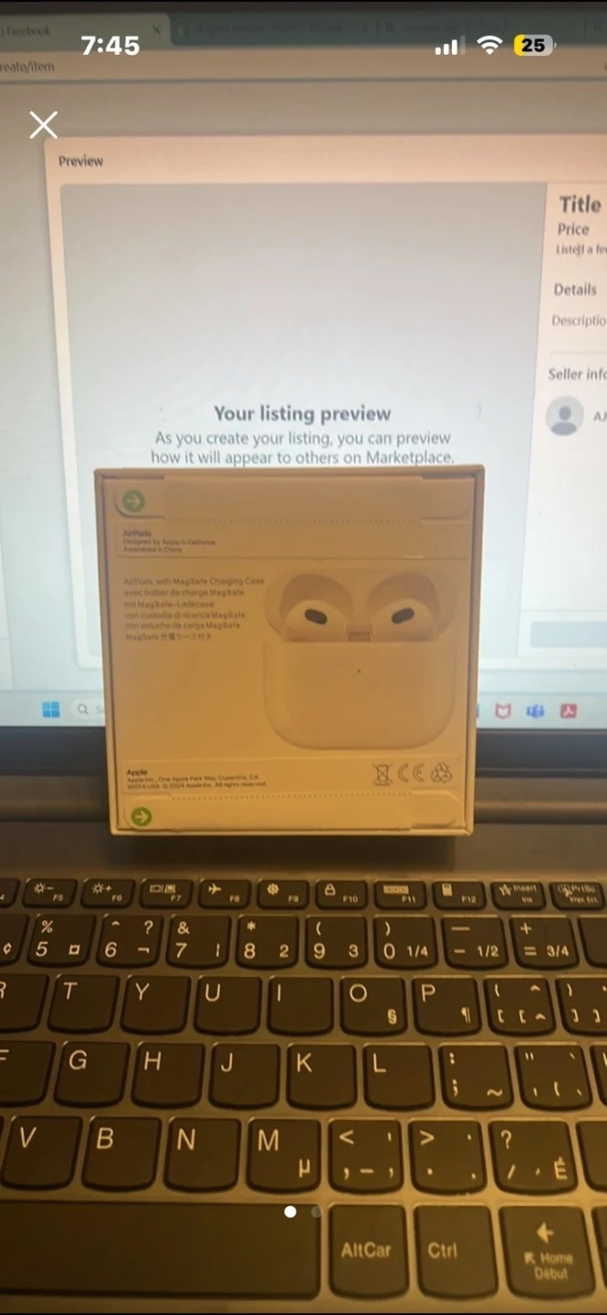 Apple AirPods (3rd generation) with MagSafe Charging Case. These wireless earbuds offer a comfortable fit and high-quality sound. Includes original packaging.