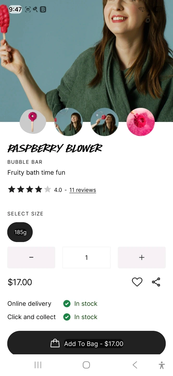 Fruity bath time fun with this raspberry-scented bubble bar. It's good for multiple baths and offers bath time fun for all ages. Bergamot and grapefruit oils boost moods. This product needs no packaging and no introduction.