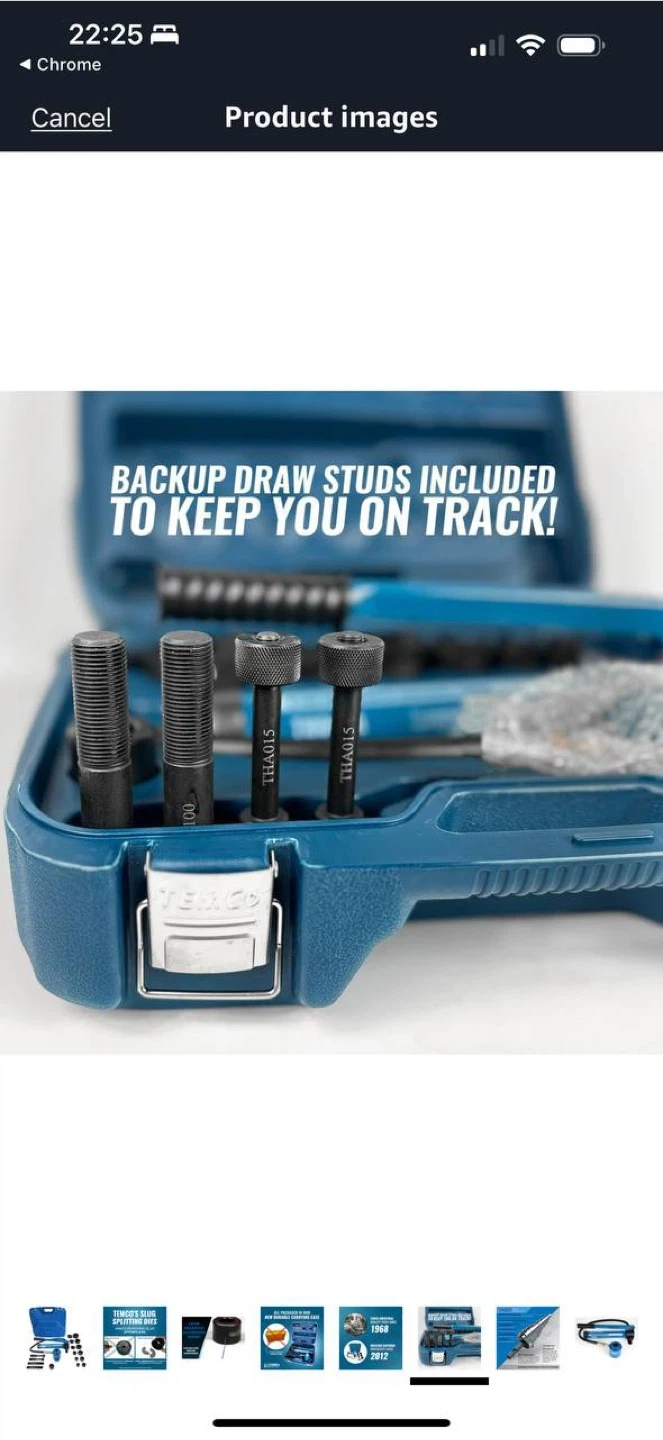 β Includes hydraulic pump, punch dies, draw studs & carrying case