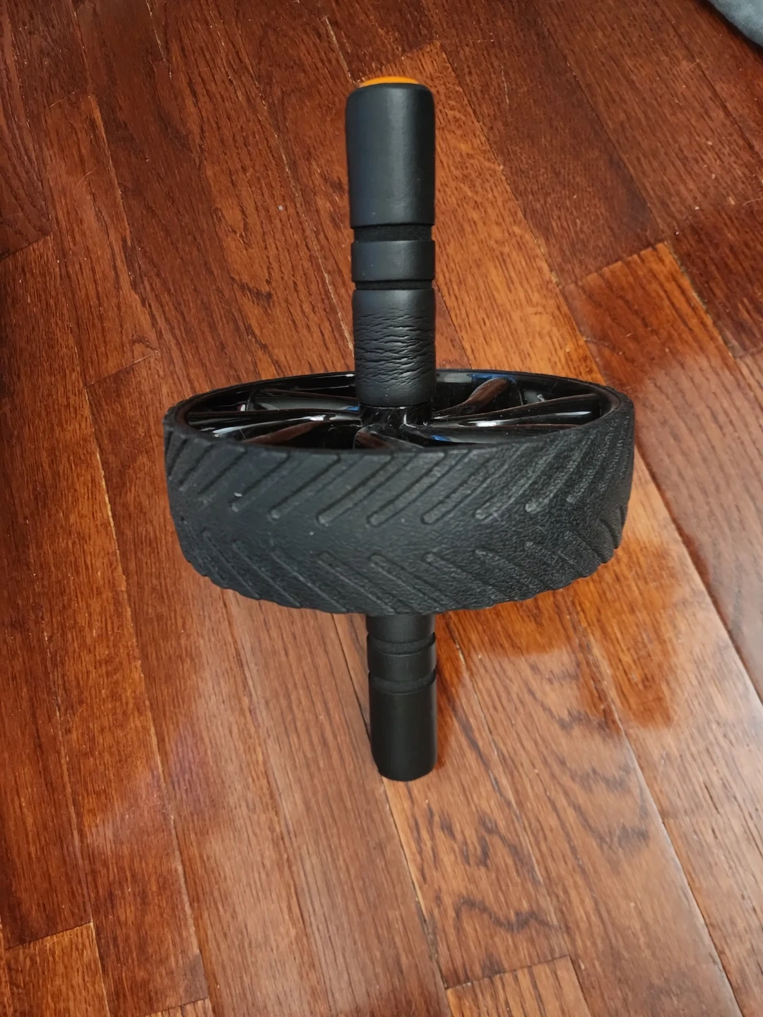 This HEAD ab roller wheel is designed for core strength training. It features a durable black wheel with textured grip handles for stability. The wheel provides resistance for effective abdominal workouts. Only used handful times