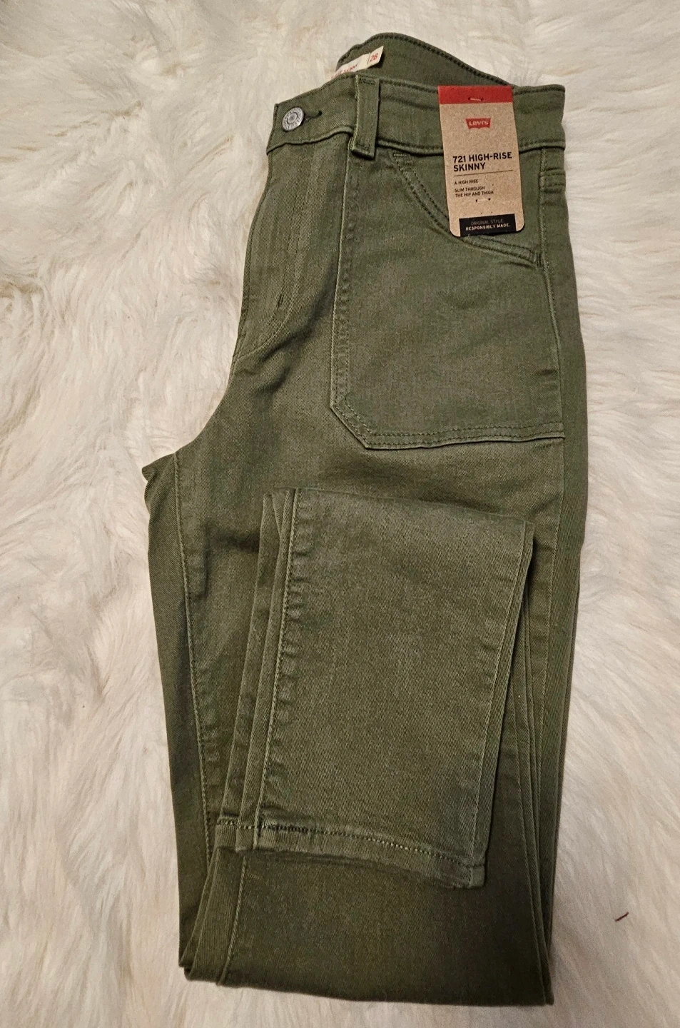 Levi's 721 High-Rise Skinny Jeans - Olive Green - Size 28