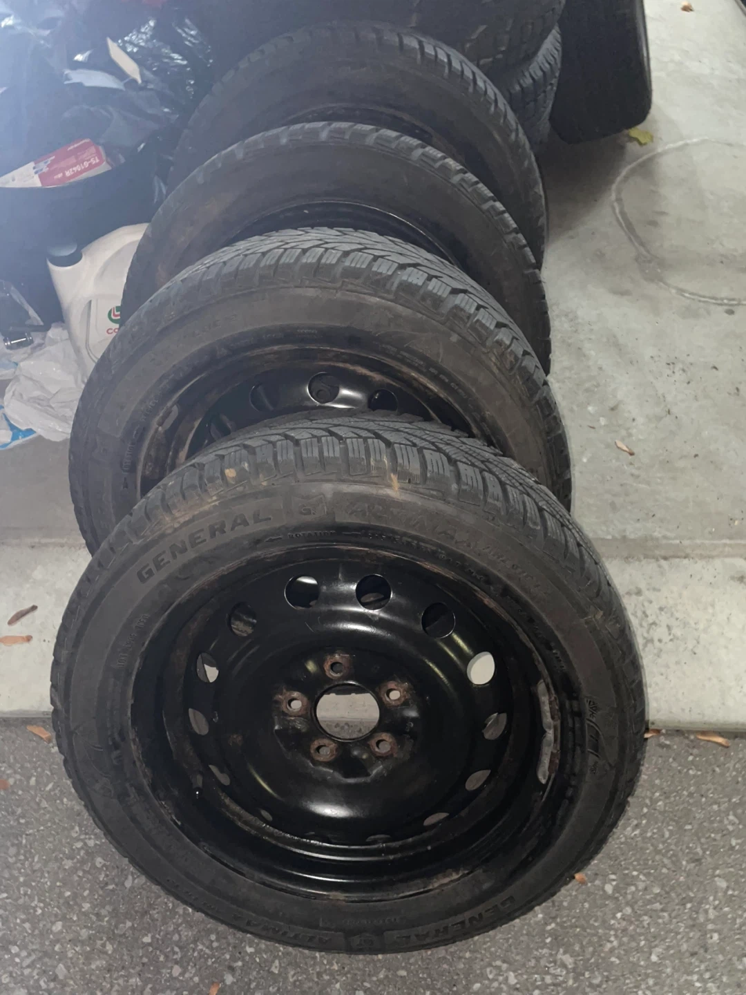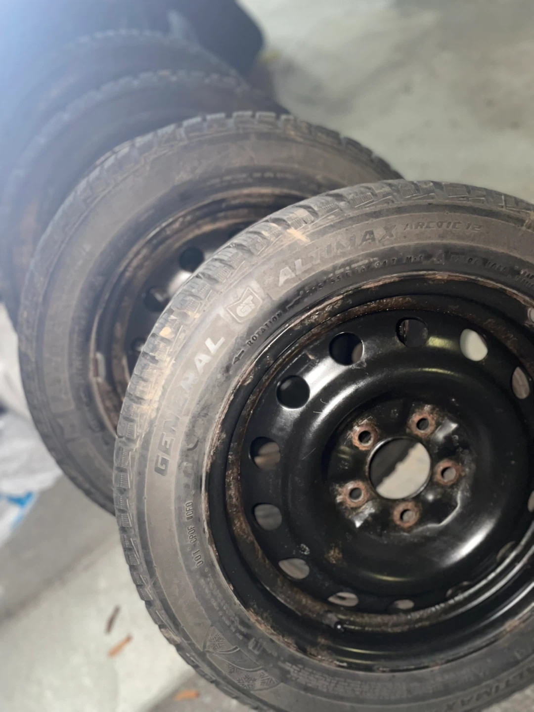 Selling a set of four General Altimax Arctic 12 winter tires mounted on steel rims. These tires are known for their excellent grip in snowy and icy conditions. They're great for ensuring safety during the colder months. Winter tires provide better traction and braking performance when temperatures drop.