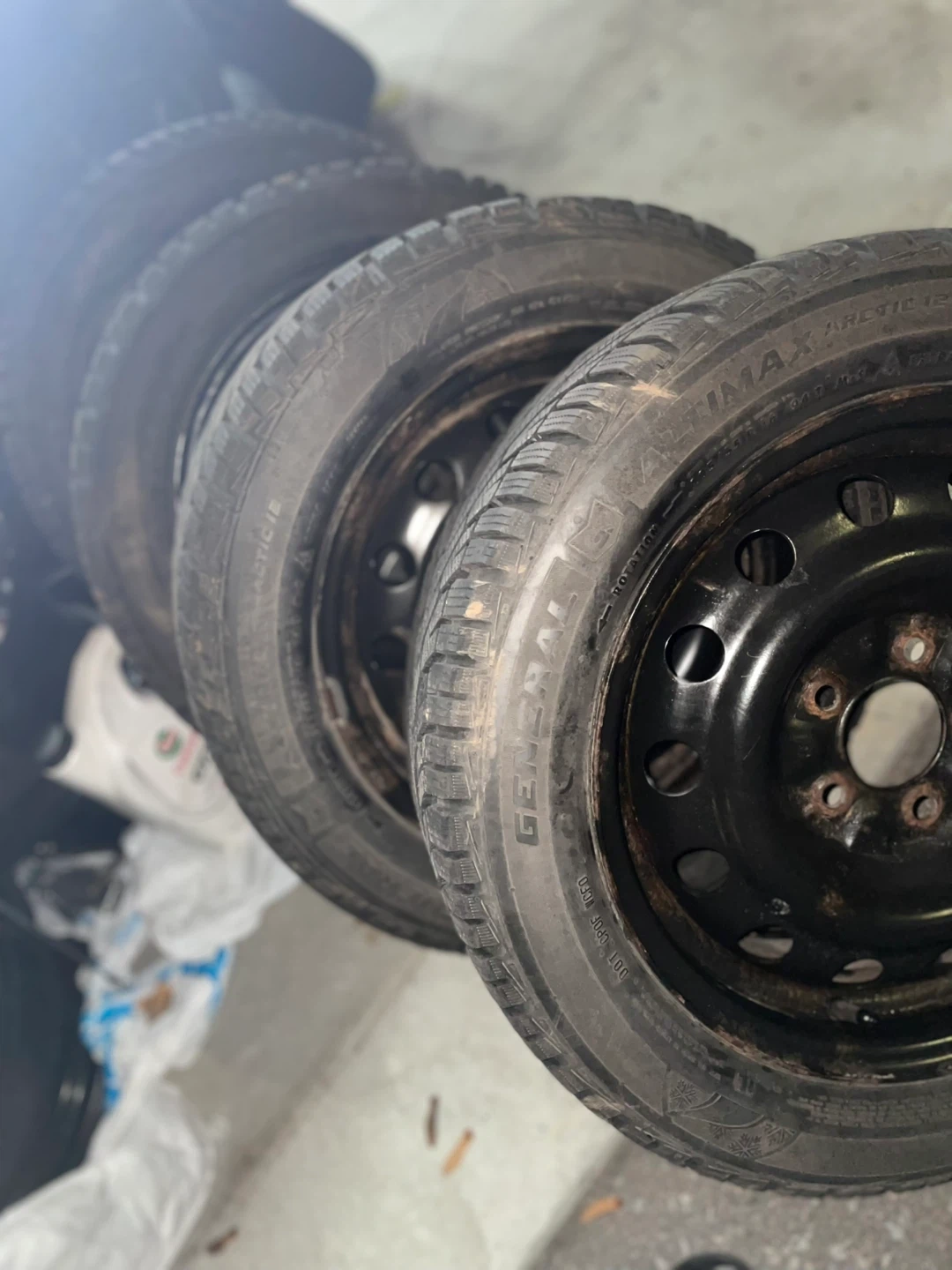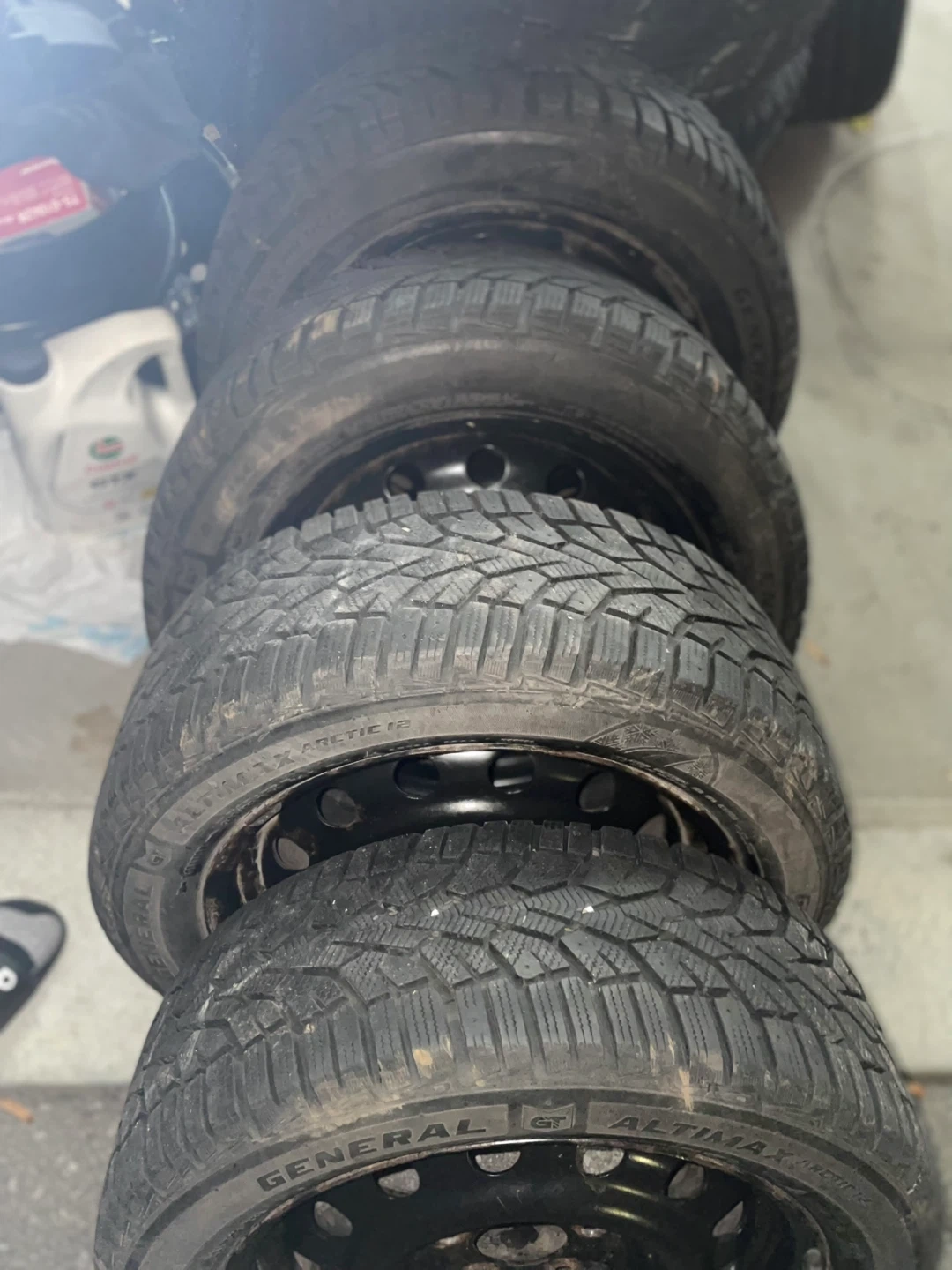 Selling a set of four General Altimax Arctic 12 winter tires mounted on steel rims. These tires are known for their excellent grip in snowy and icy conditions. They're great for ensuring safety during the colder months. Winter tires provide better traction and braking performance when temperatures drop.