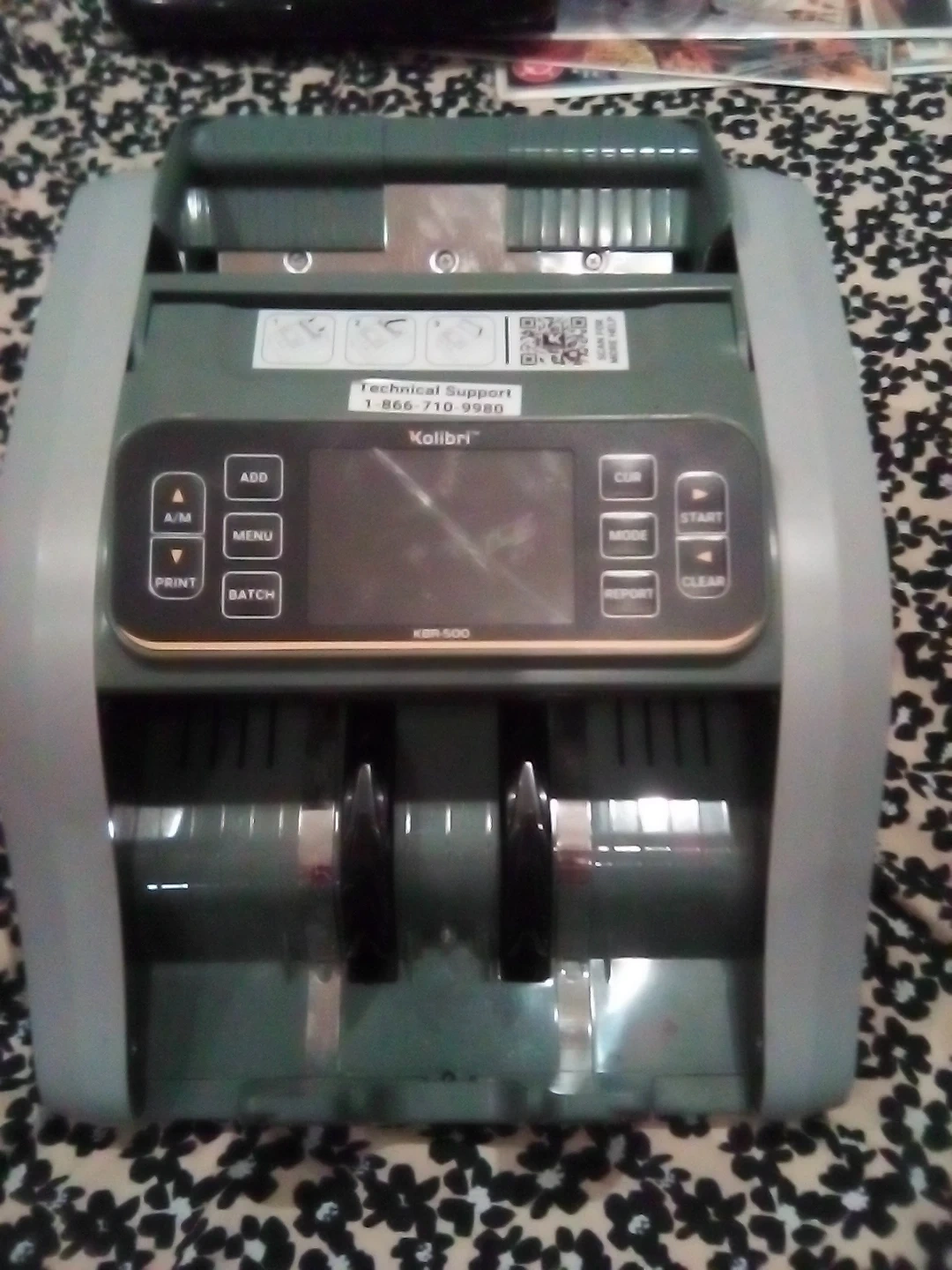 This is a Kolibri KBR-500 bill counter. It's designed for high-volume counting and verification of banknotes. Features include multiple counting modes and a clear digital display. Includes power cable, it works but screen is cracked.