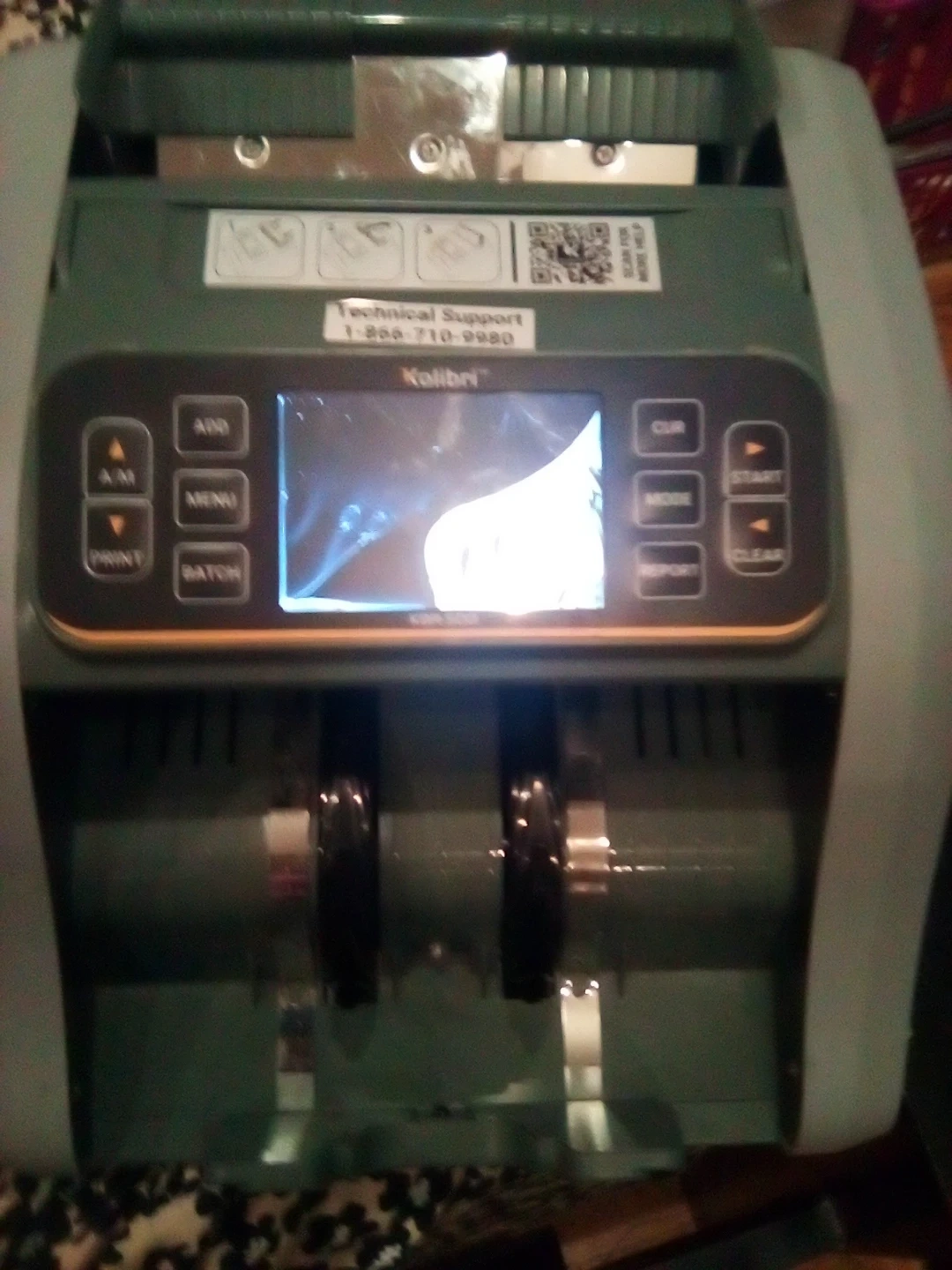 This is a Kolibri KBR-500 bill counter. It's designed for high-volume counting and verification of banknotes. Features include multiple counting modes and a clear digital display. Includes power cable, it works but screen is cracked.