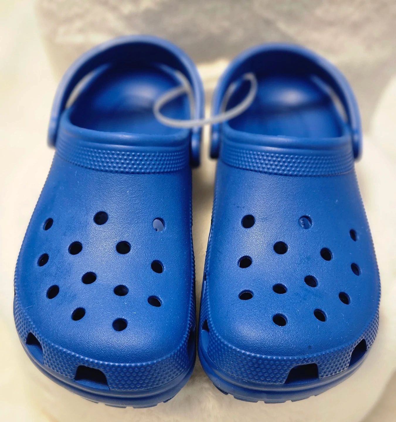 Blue Crocs clogs in size 10 Men & 12 Women. Made of Croslite material. Easy to clean and comfortable for everyday wear!