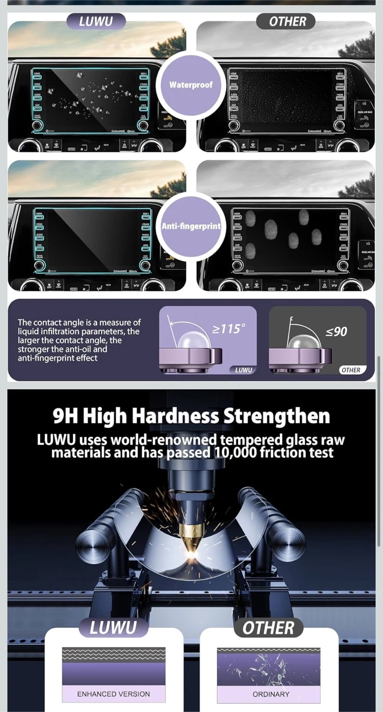 This premium quality screen protector offers 9H hardness, is oil and fingerprint proof, and maintains high HD clarity. It's bubble-free and easy to adhere, ensuring a smooth touch feeling. Protects your 8-inch touchscreen from scratches and damage.