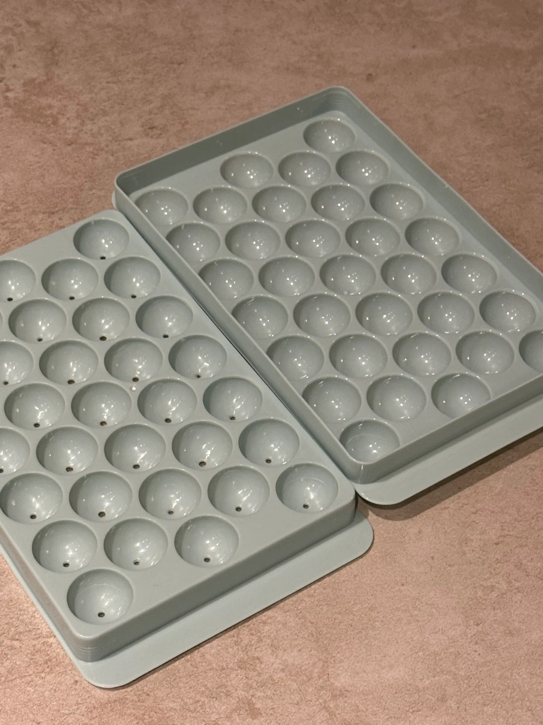 Selling two blue round ice cube trays and a blue & white round ice cube tray.
