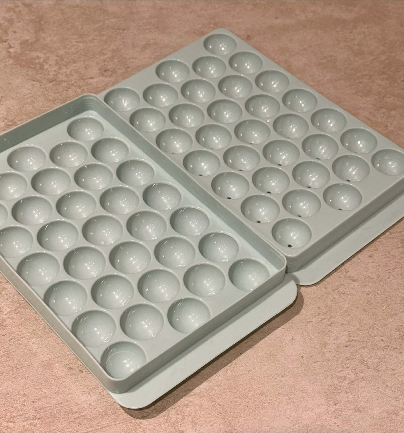 Selling two blue round ice cube trays and a blue & white round ice cube tray.